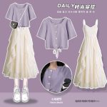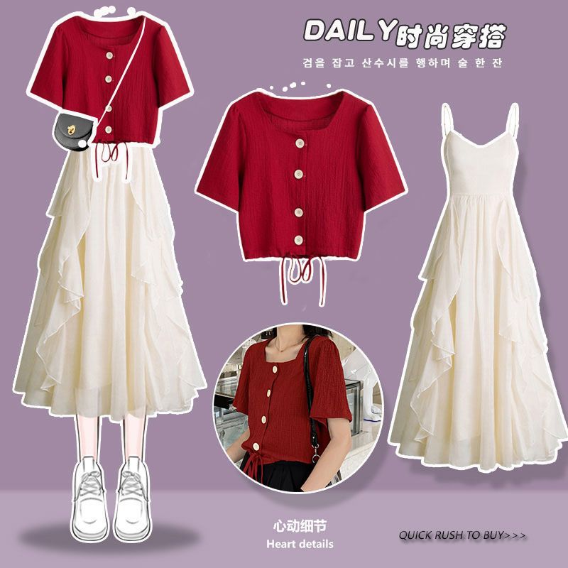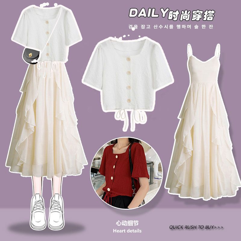 | nameOriginal | plus size Women's Clothing Summer suit Women's 2024 New Arrival Loose Age-reducing Top Tight Waist Sling dress Two-piece Set Fashionable |