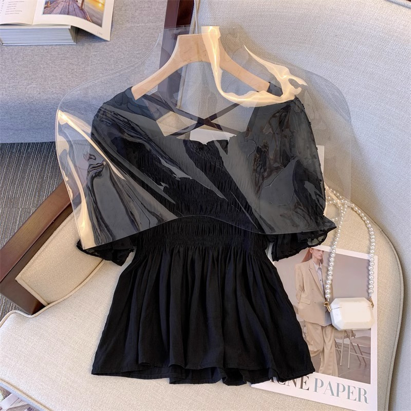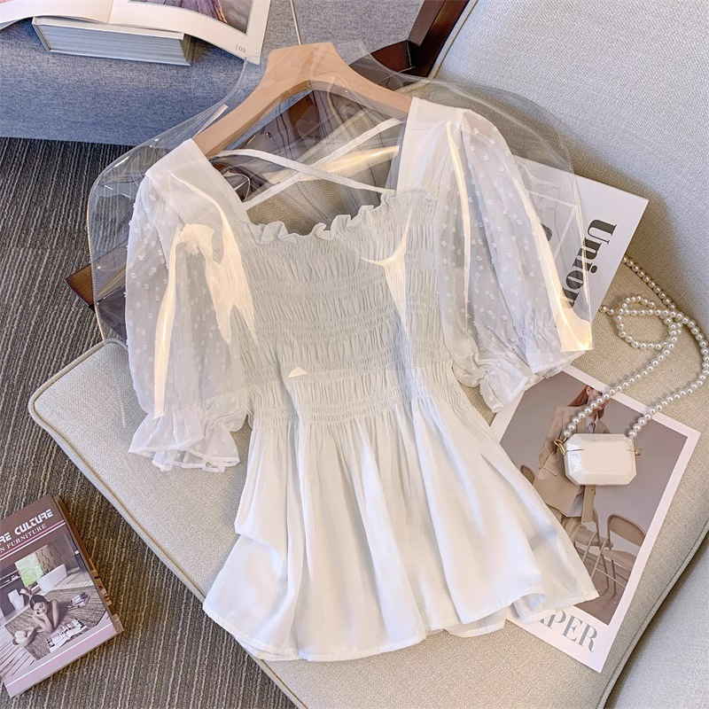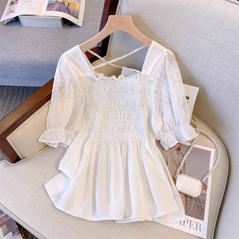 | nameOriginal | plus size Women's Design Square Collar Waist Top 2024 chubby girl Slim Puff Sleeve Shirt |