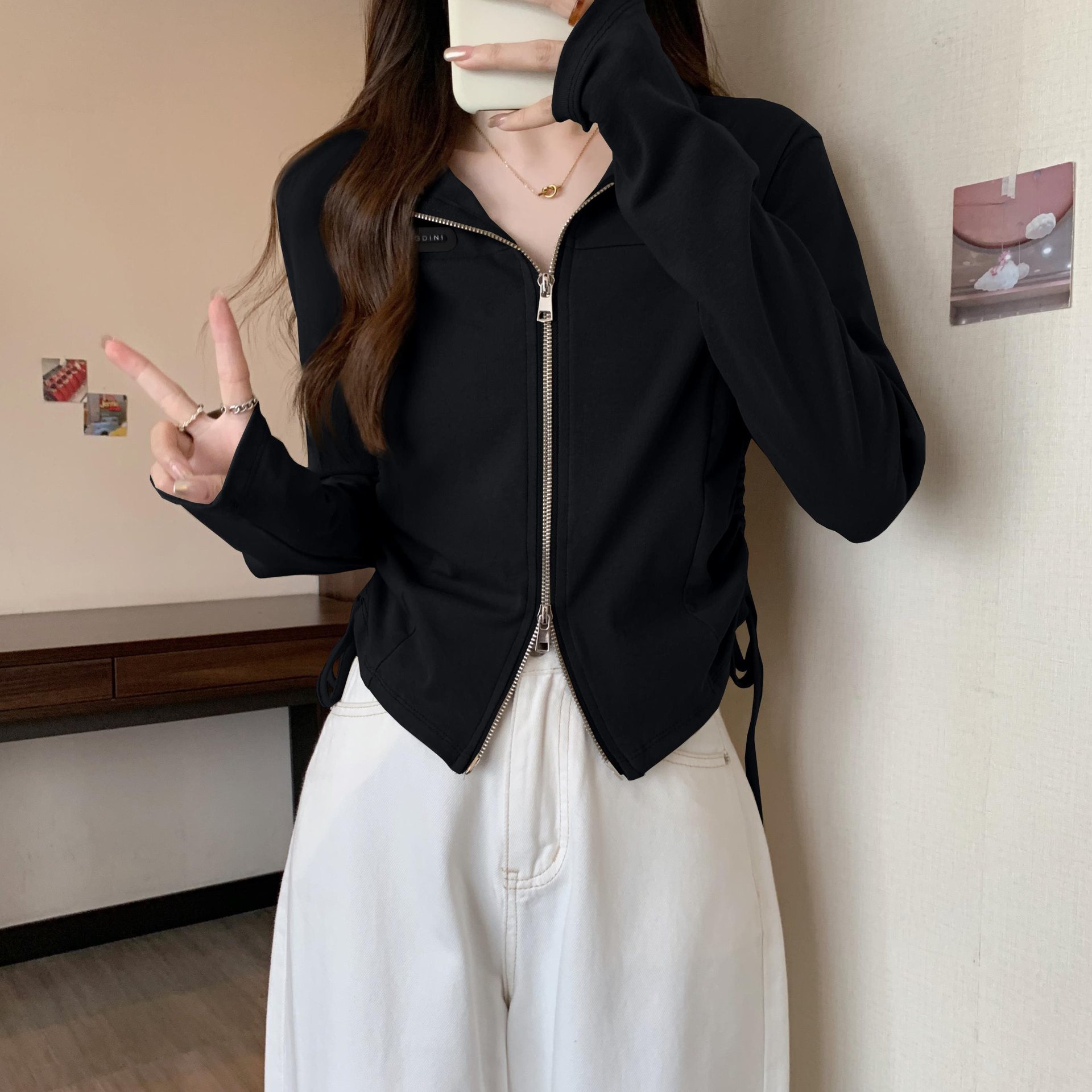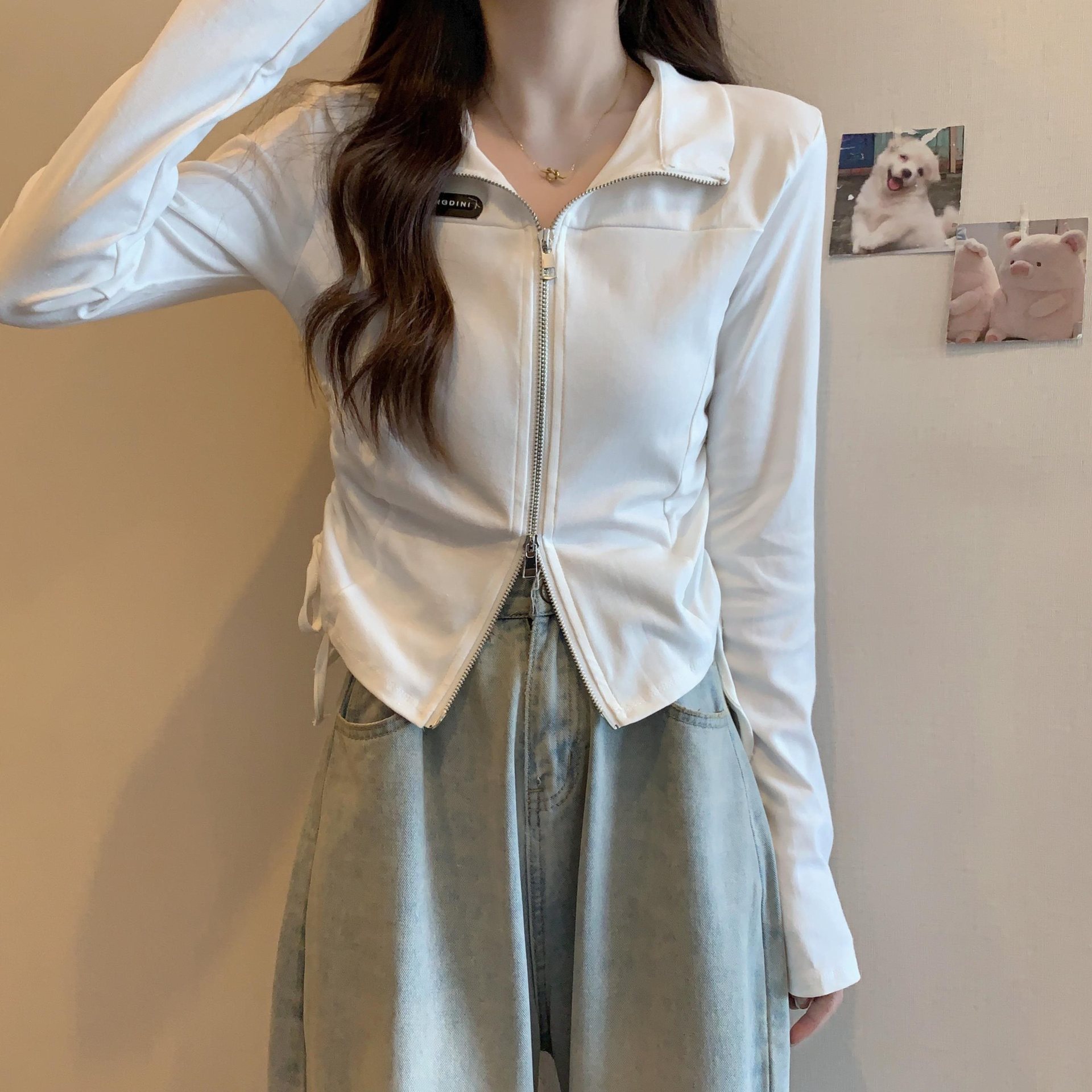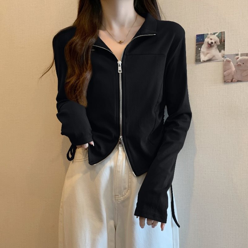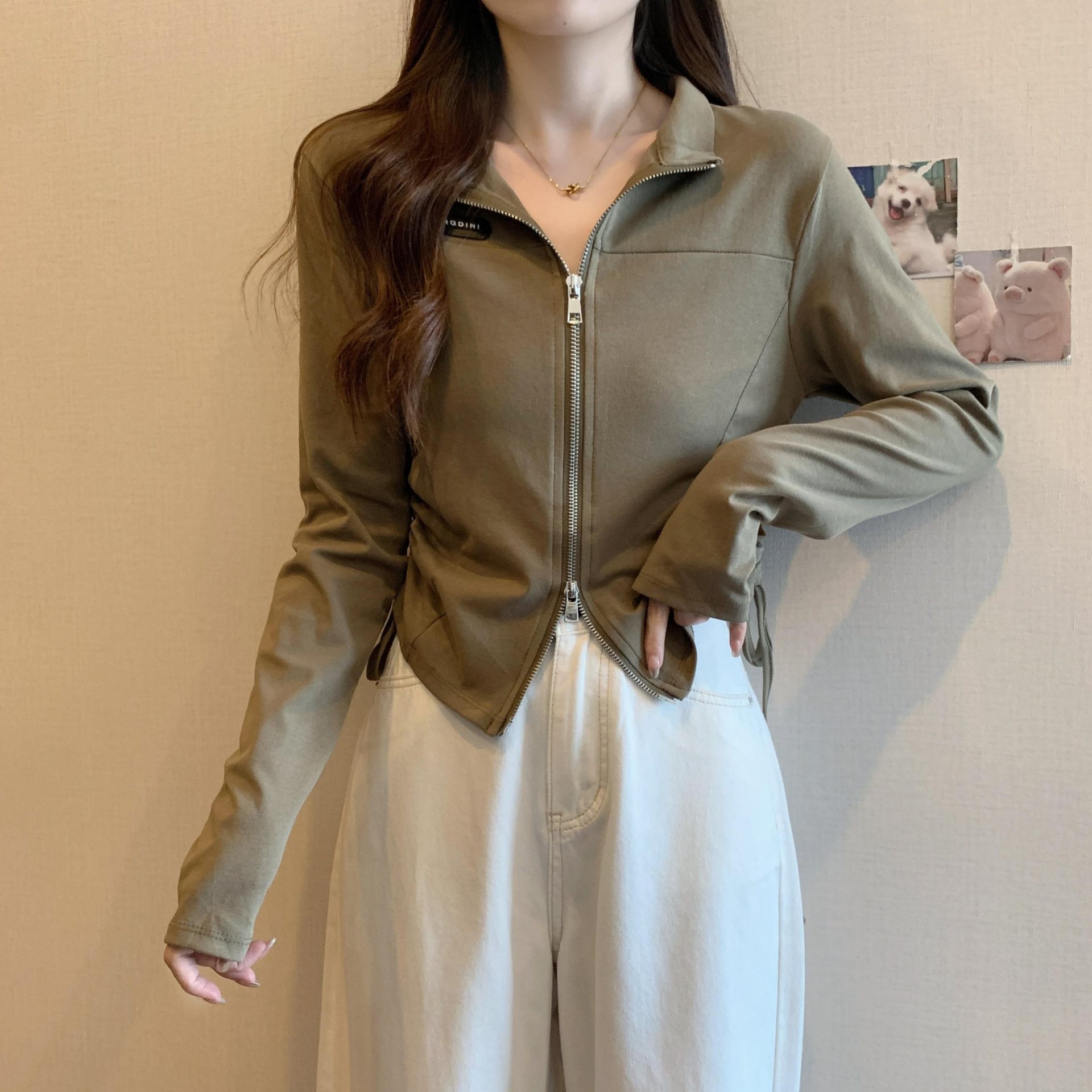 | nameOriginal | plus size Women's Early Spring Polo Collar Front Shoulder Zipper Cardigan Sweater Jacket chubby girl Slim-Fit Slim Belly Covering Short Top |