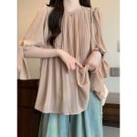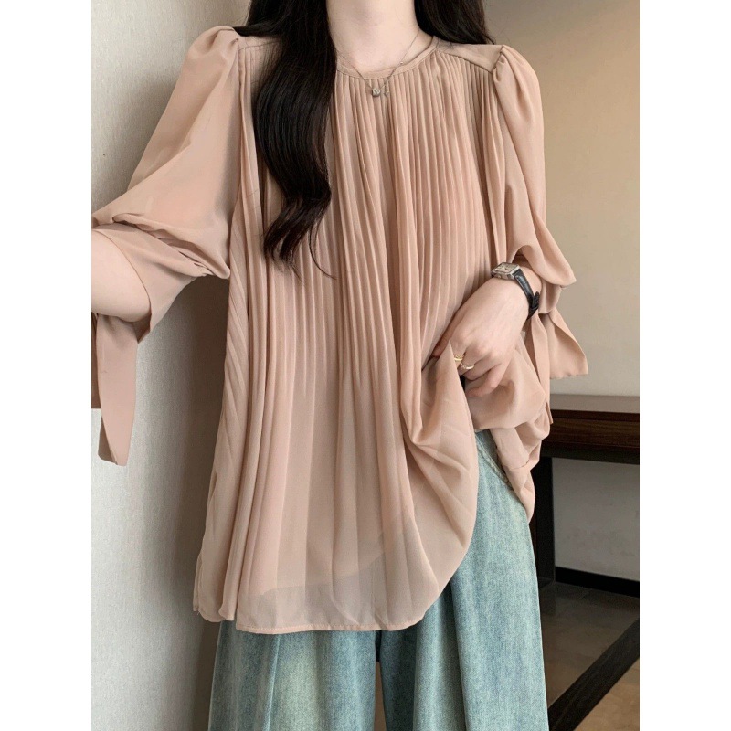 | nameOriginal | plus size Women's Fat 2024 Summer French Slimming Loose Belly Covering Flesh-hiding Lantern Sleeve Chiffon Shirt Top |