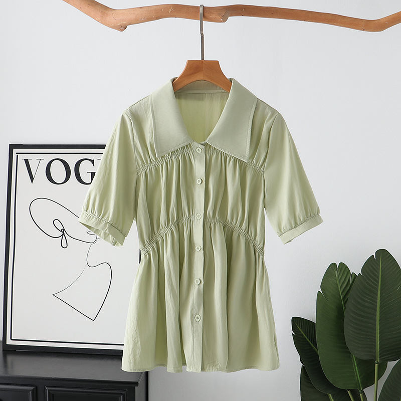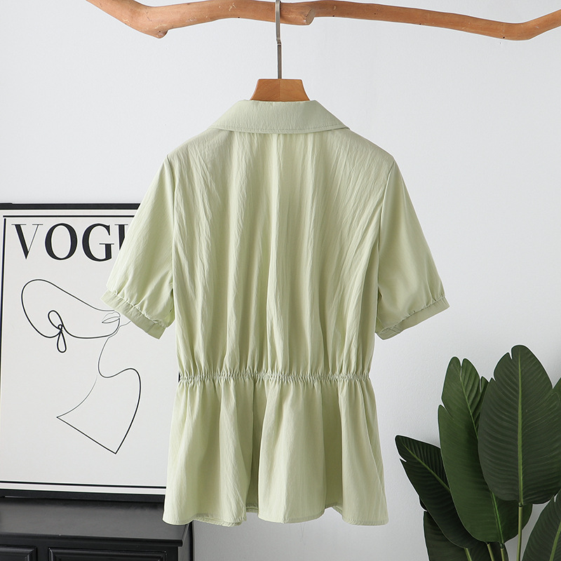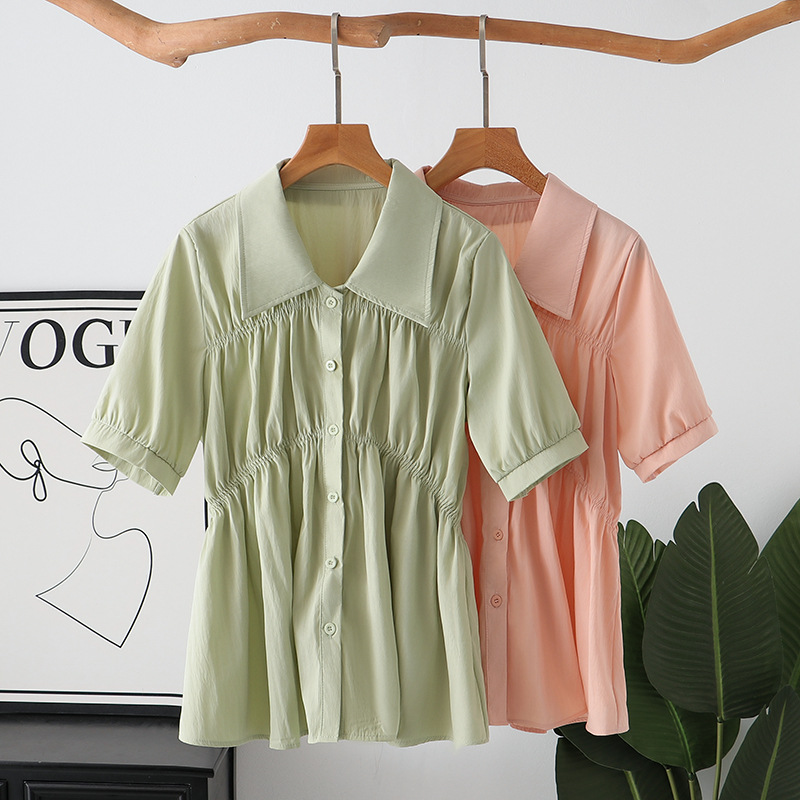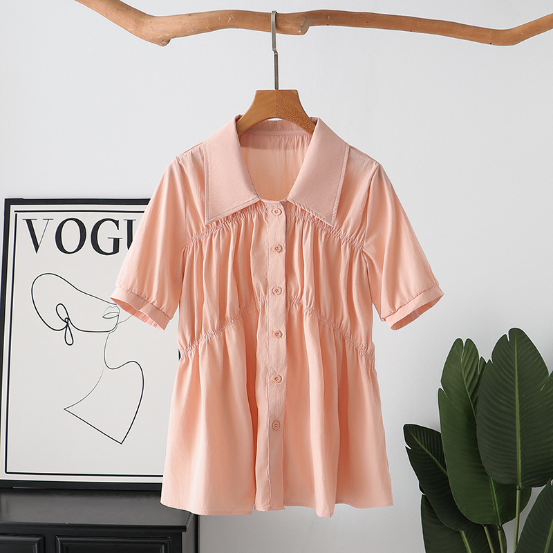 | nameOriginal | plus size women's fat sister waist slimming Polo collar doll shirt summer versatile solid color short sleeve top 801269 |
