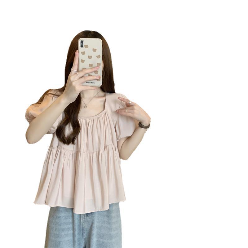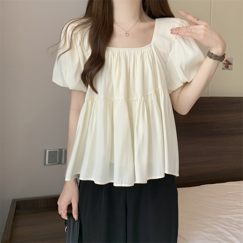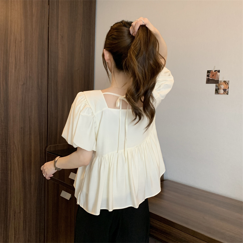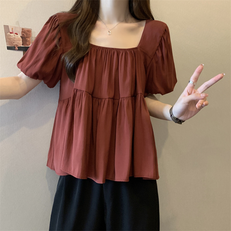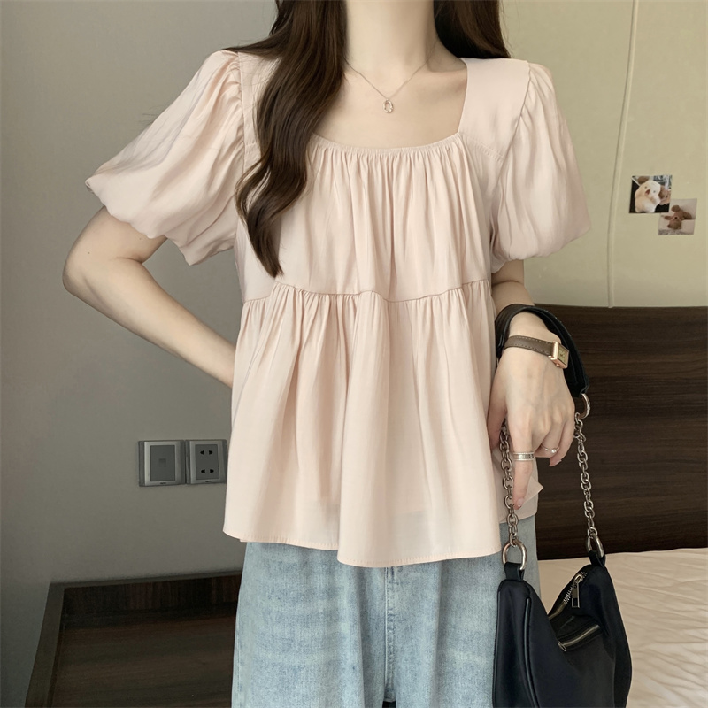 | nameOriginal | plus size Women's French Square Collar Clavicle Bubble Sleeve Shirt Women's Summer chubby girl Gentle Sweet Age-reducing Shoulder Top |