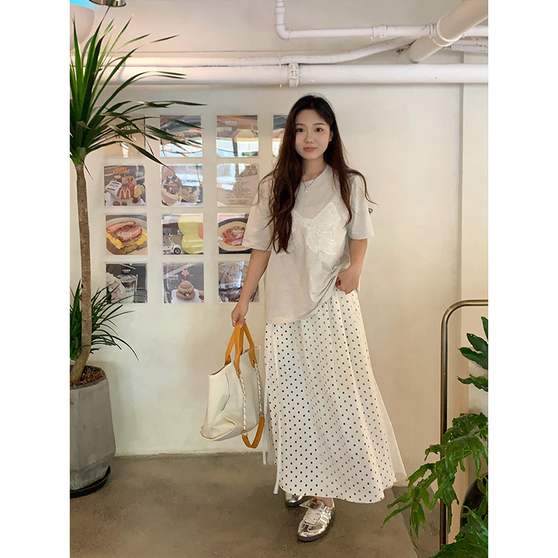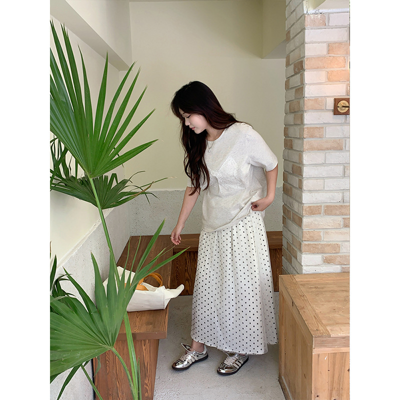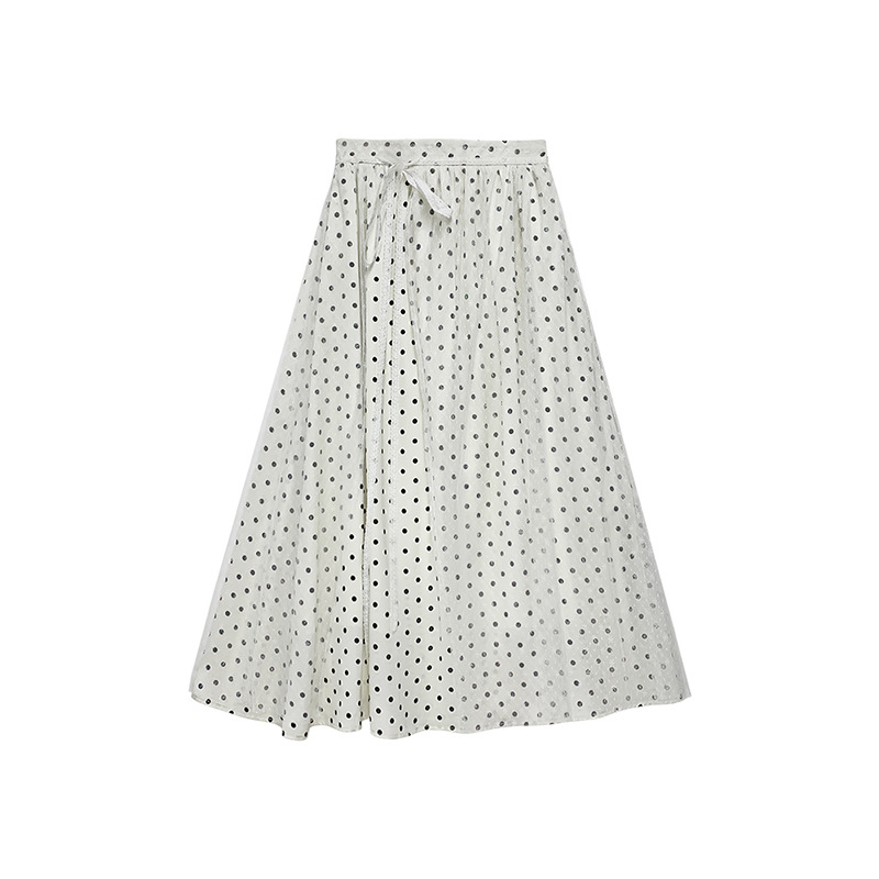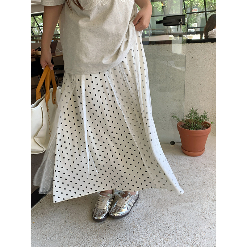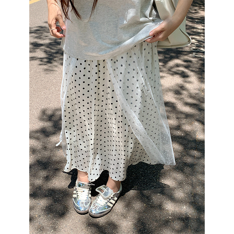 plus size Women's High Waist Wave Dot Lace Skirt Retro Slimming Long Skirt Summer Gentle Sweet Girl A- line Skirt