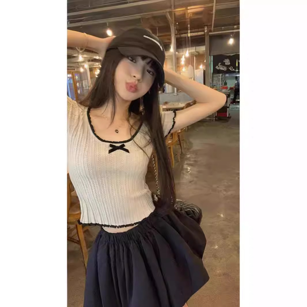 | nameOriginal | plus size Women's Hollow Bow Sweater Sweet Slim Short Top |