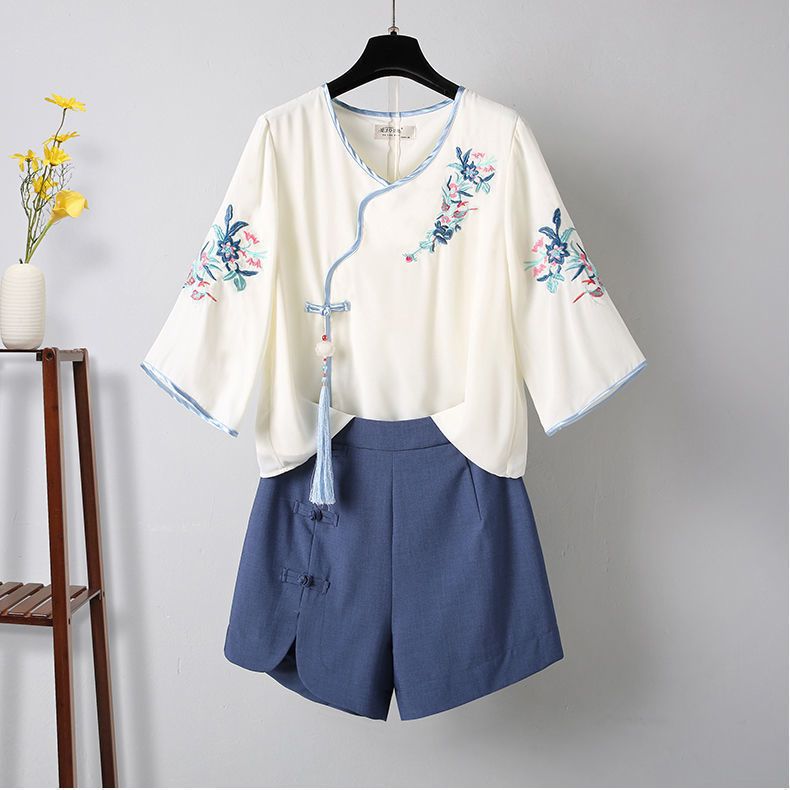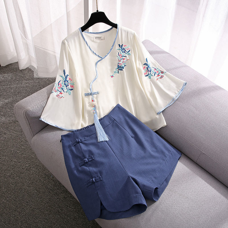 | nameOriginal | plus size Women's Improved Hanfu suit Women's Summer 2024 New Retro National Fashion Top Wide Leg Pants Two-piece Set |