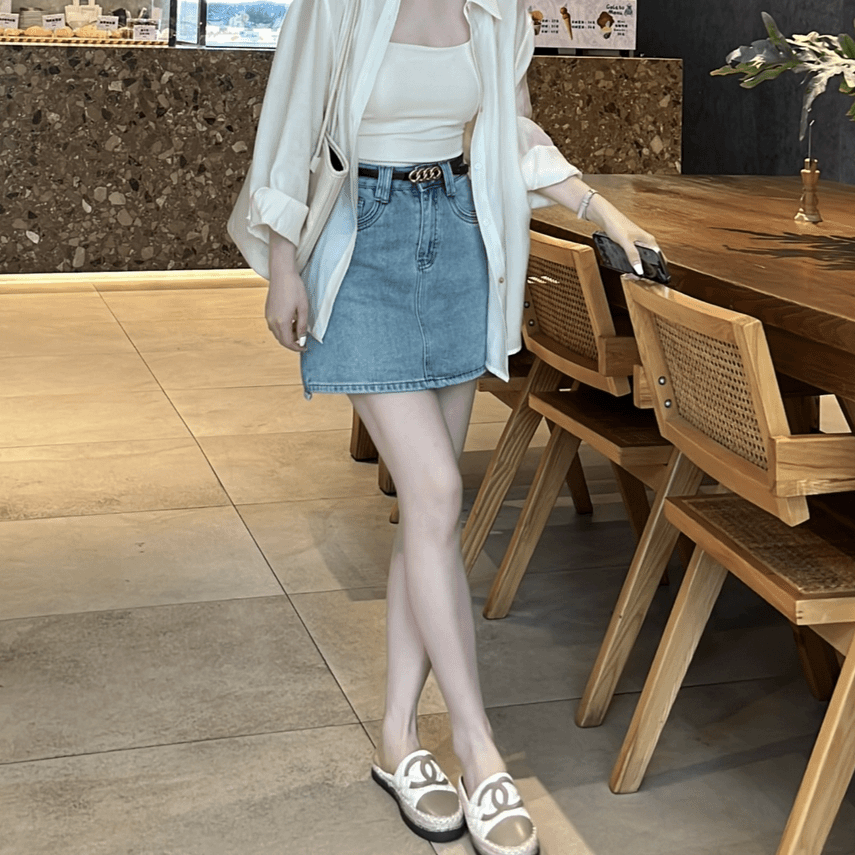 | nameOriginal | plus size Women's Korean-style Denim Short Skirt Women's Summer Thin Chubby Girl High Waist Loose Anti-glare A- line Skirt |