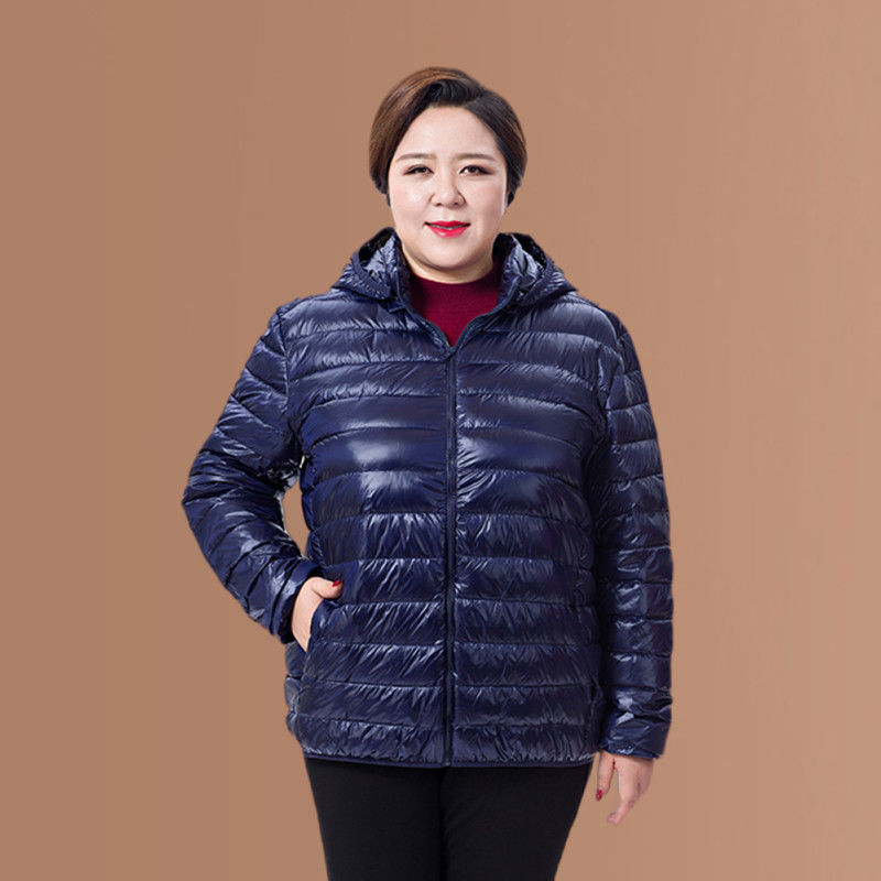 Plus size women’s lightweight down jacket short kg fat mom autumn and winter middle-aged and elderly off-season coat