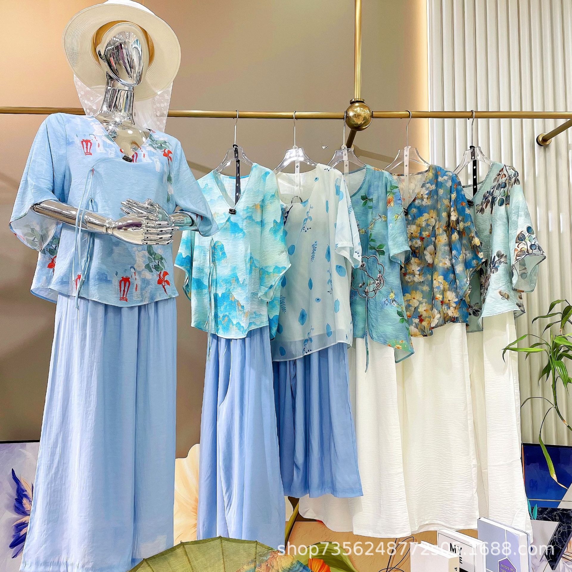 | nameOriginal | plus size Women's New Chinese Style Guofeng Two-piece Set Women's Summer Ink Button Tencel Top Solid Color Pants suit |