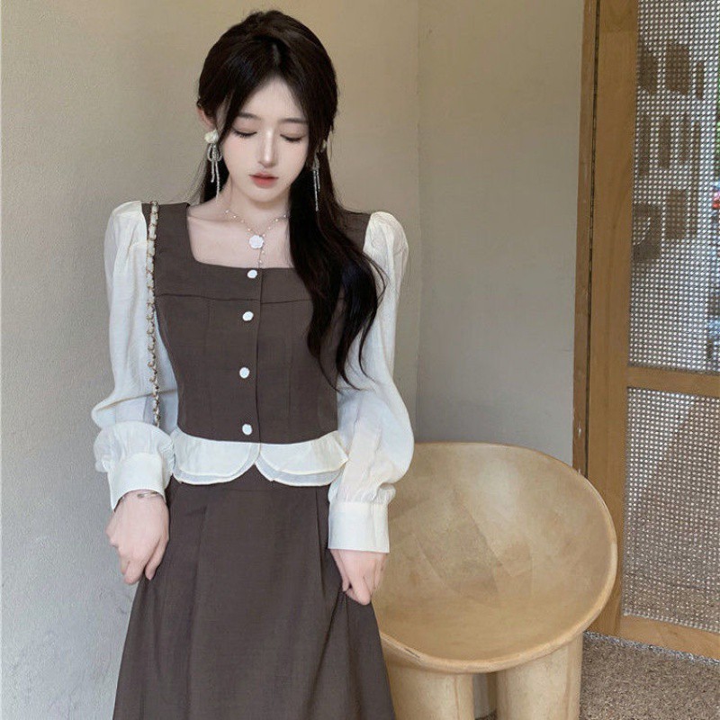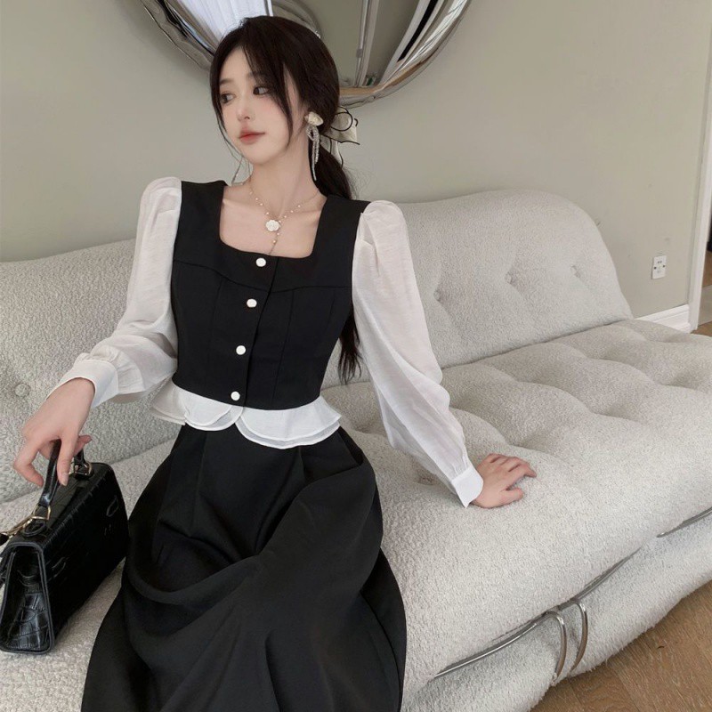 | nameOriginal | plus size Women's New chubby girl dress Women's Retro Design French Stitching Slimming Skirt Two-piece Suit |