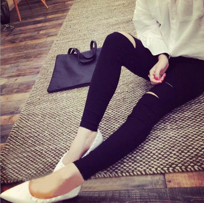 plus size Women’s Pants with Holes Leggings Women’s Outer Wear Thin Black Chubby Foot Cropped Pants Jin Spring and Autumn Summer