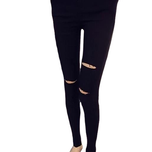 plus size Women's Pants with Holes Leggings Women's Outer Wear Thin Black Chubby Foot Cropped Pants Jin Spring and Autumn Summer