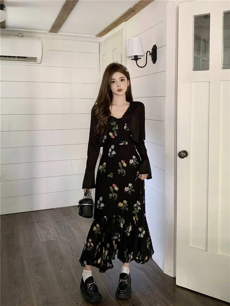 | nameOriginal | Plus size women's slightly fat floral fairy dress female summer skirt fat MM slim belly-covering suspender skirt two-piece set |