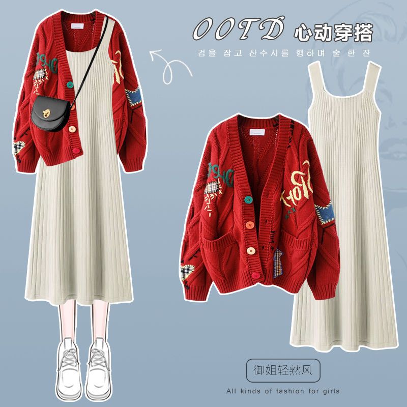 | nameOriginal | plus size Women's Spring 2024 New Slimming Design Sense Lazy Style Knitted Cardigan Elegant Suspender Skirt Two-piece Set |