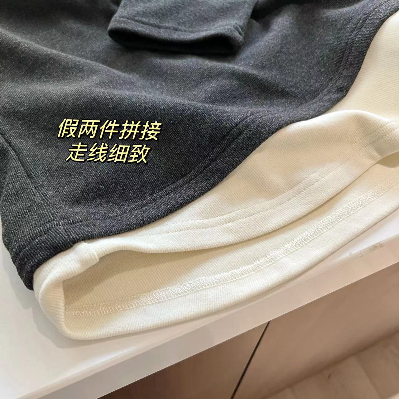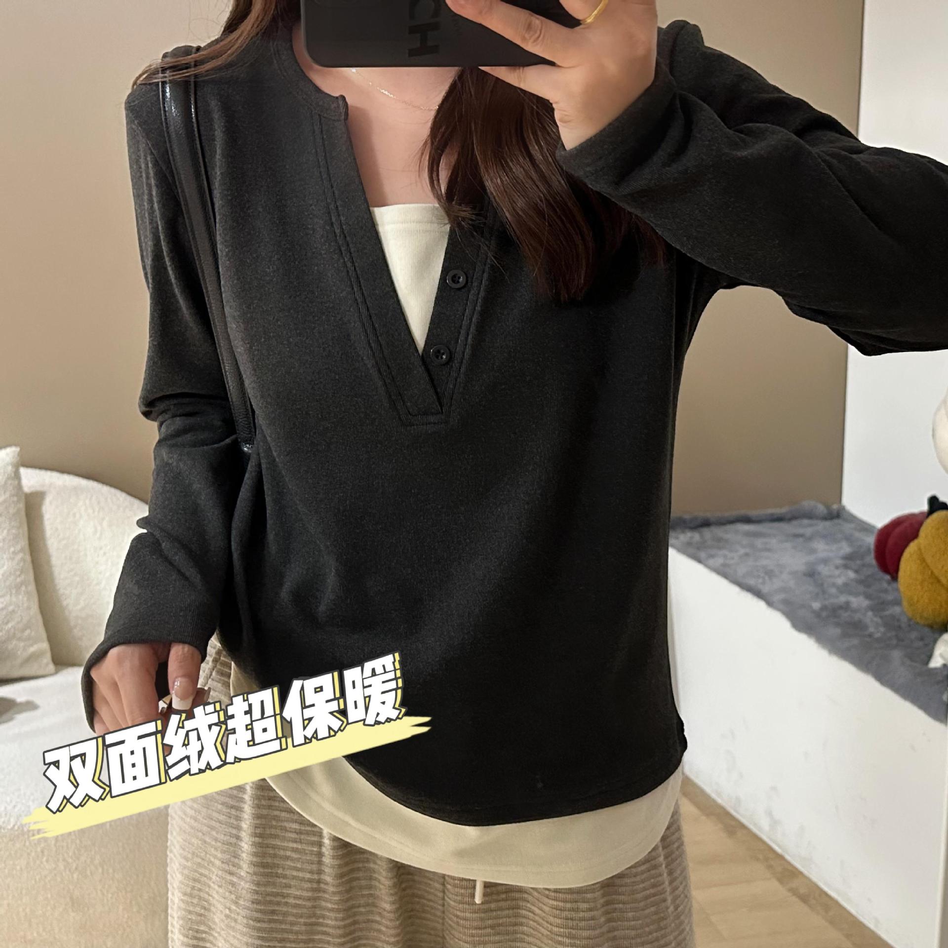 | nameOriginal | plus size Women's Spring New chubby girl Belly Covering Top with Base Shirt Loose Fashionable Fake Two-piece Long-sleeved T-shirt |