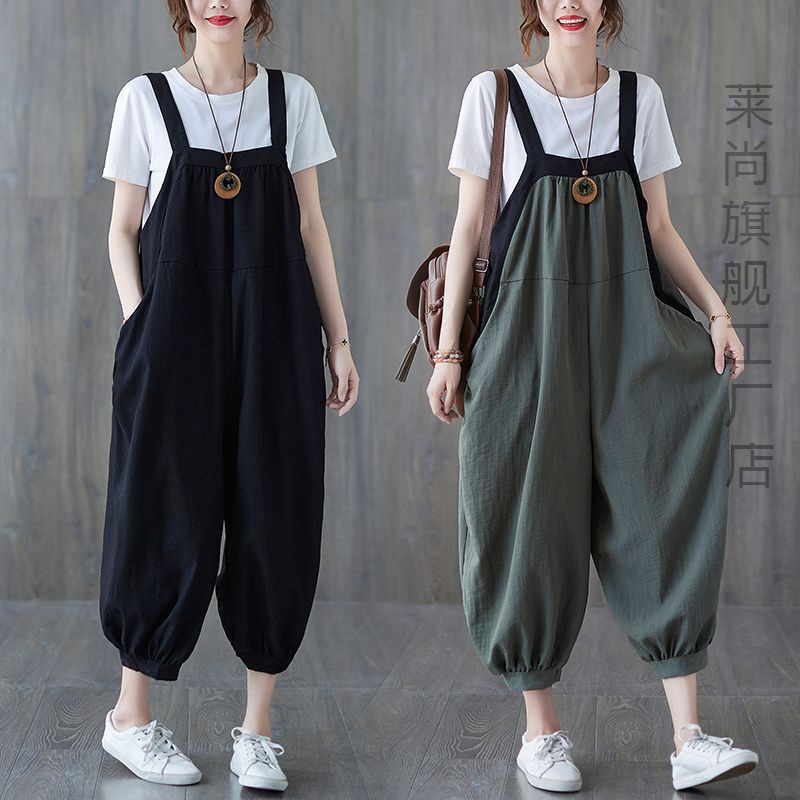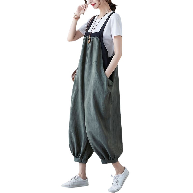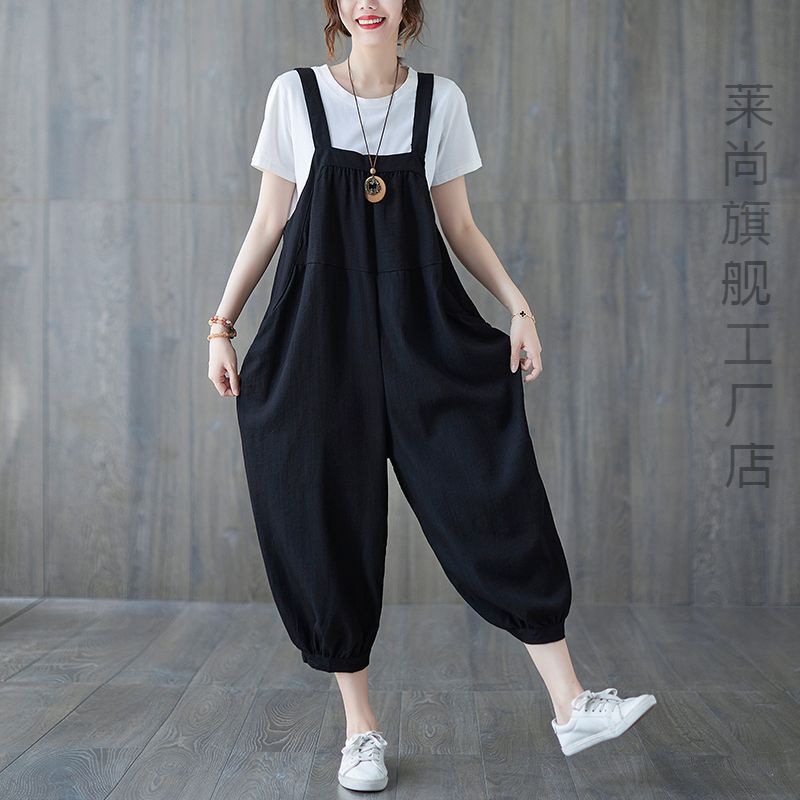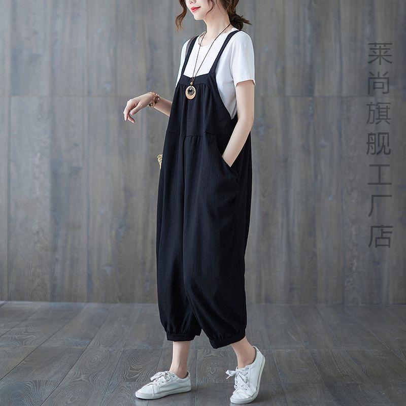| nameOriginal | plus size Women's Summer Artistic Cotton and Linen Suspender Pants Summer Loose Cropped Pants Slimming Western Style Sling Elegant |