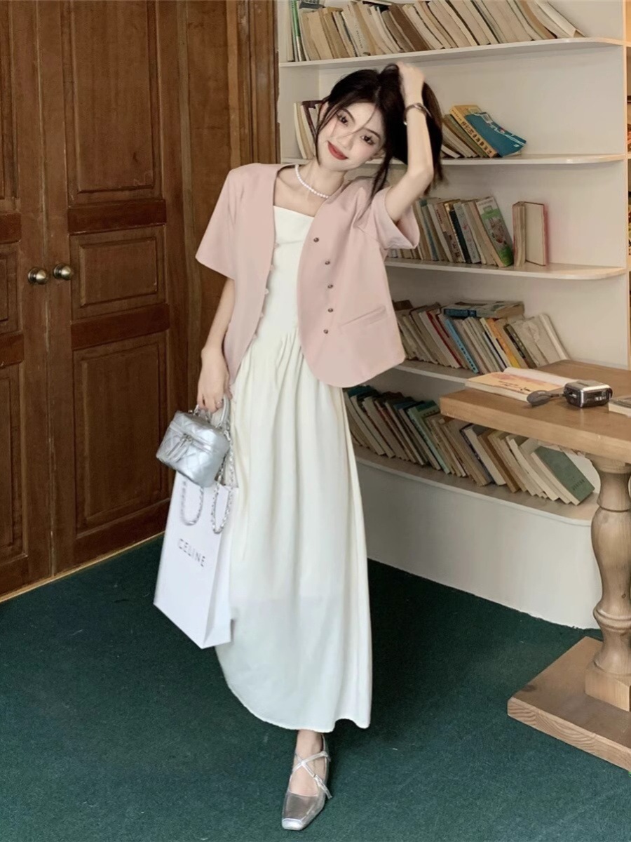 | nameOriginal | plus size Women's Summer Chanel Style High-end Short-sleeved Suit Jacket Sling dress Slimming Elegant Two-piece Suit |