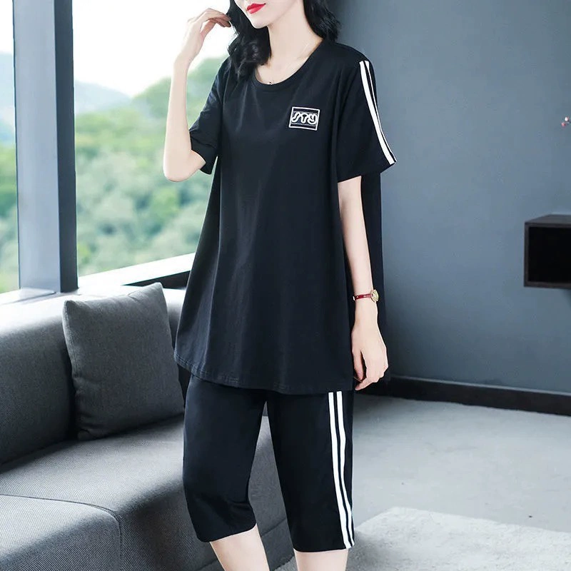 | nameOriginal | Plus size women's summer cropped pants casual sports suit |