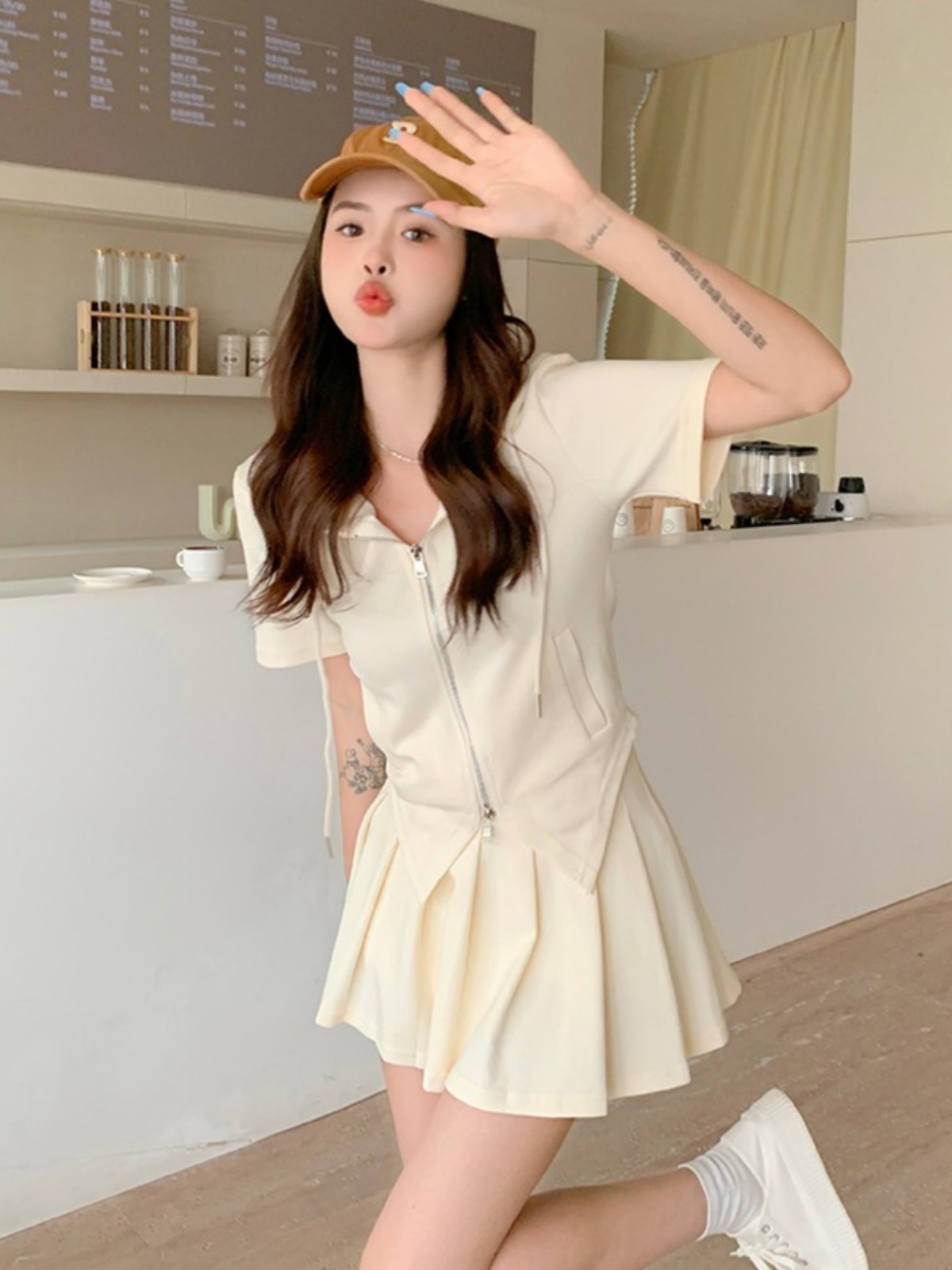 | nameOriginal | Plus size women's summer hooded A-line pleated fashion suit |