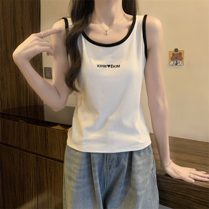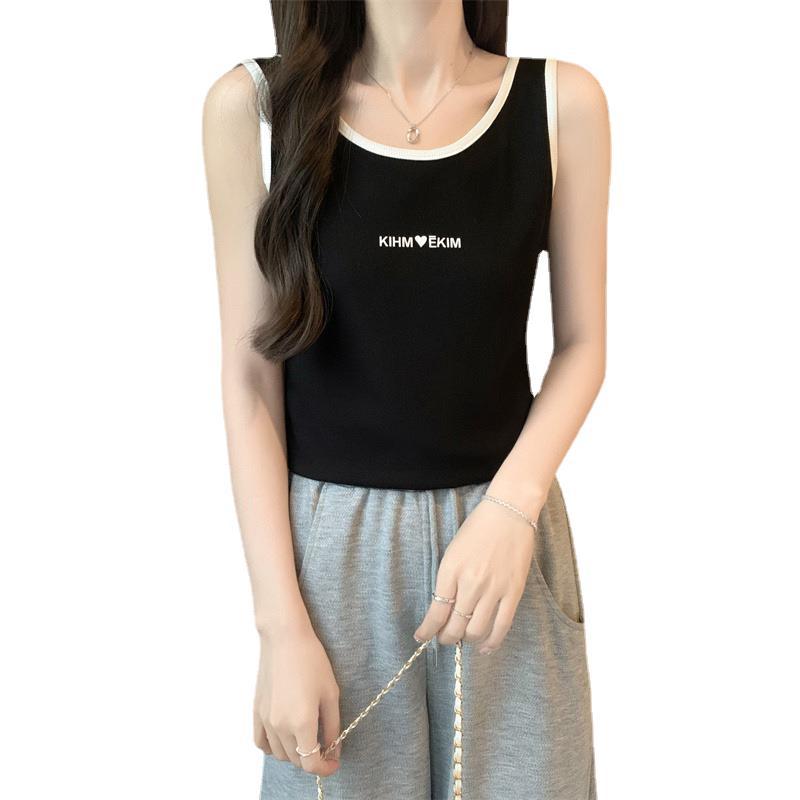 plus size Women's Summer Loose Belly-Covering Outer Wearing Letter Camisole Vest chubby girl Slim-Looking Inner Breast-Covering Top
