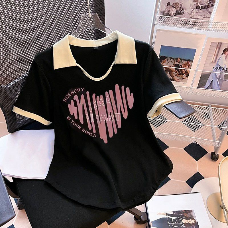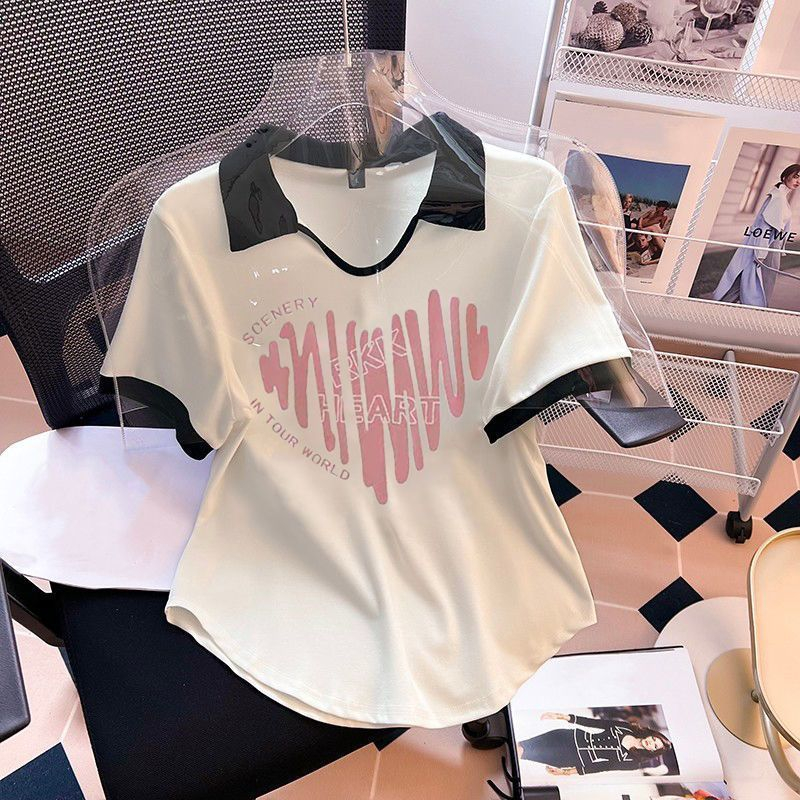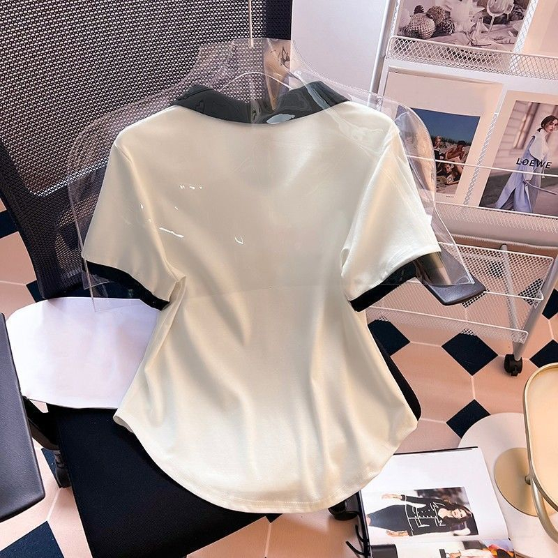 | nameOriginal | plus size Women's Summer Short-sleeved Western-style Age-reducing Slimming Shoulder T-shirt chubby girl Belly-hiding Flesh-hiding Polo Collar Chic Top |