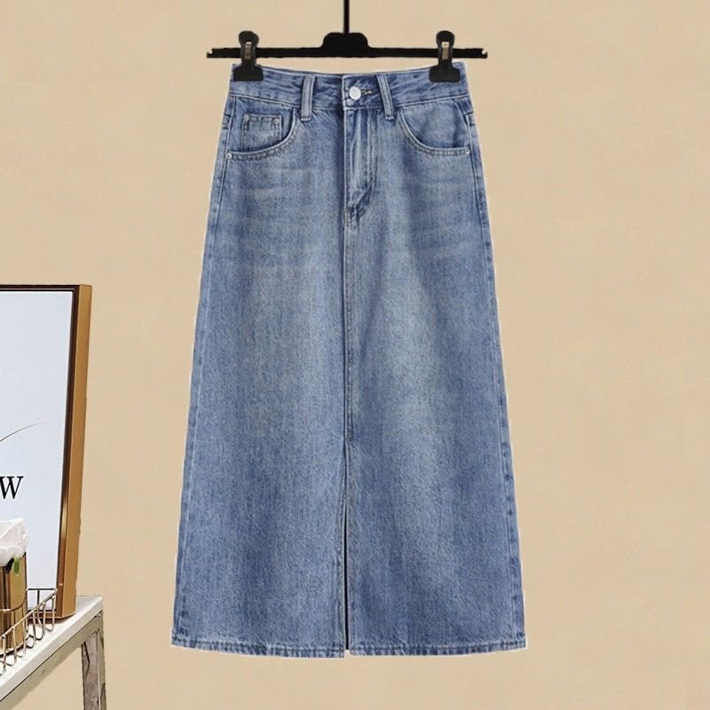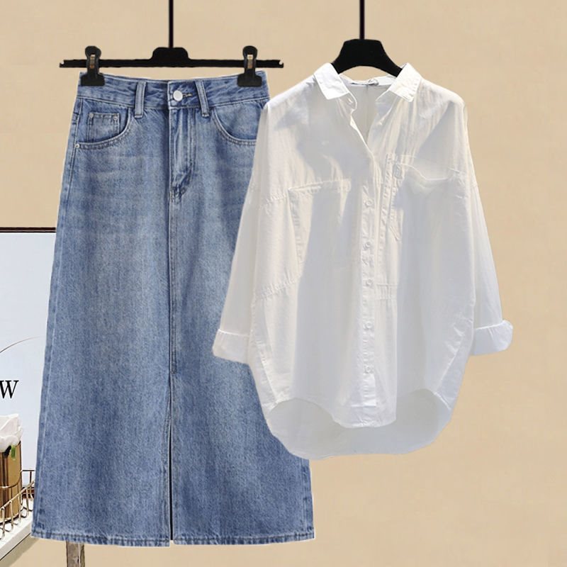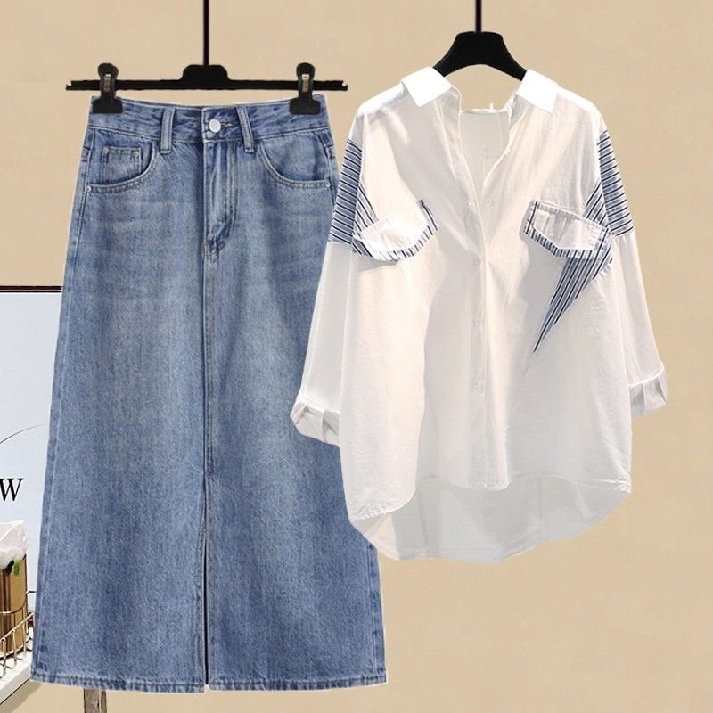plus size women’s summer suit women’s 2022 new style shirt slim split Denim skirt two-piece fashion