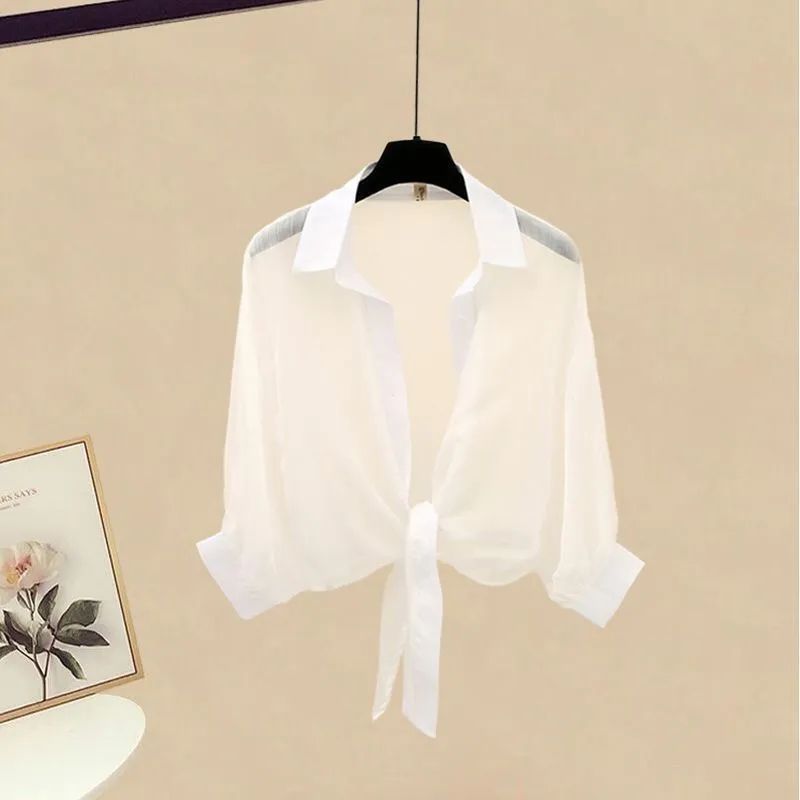 plus size Women’s Summer suit Women’s 2024 New Waist Slimming Age-reducing Cardigan Mesh Suspender Skirt Two-piece Set Trendy