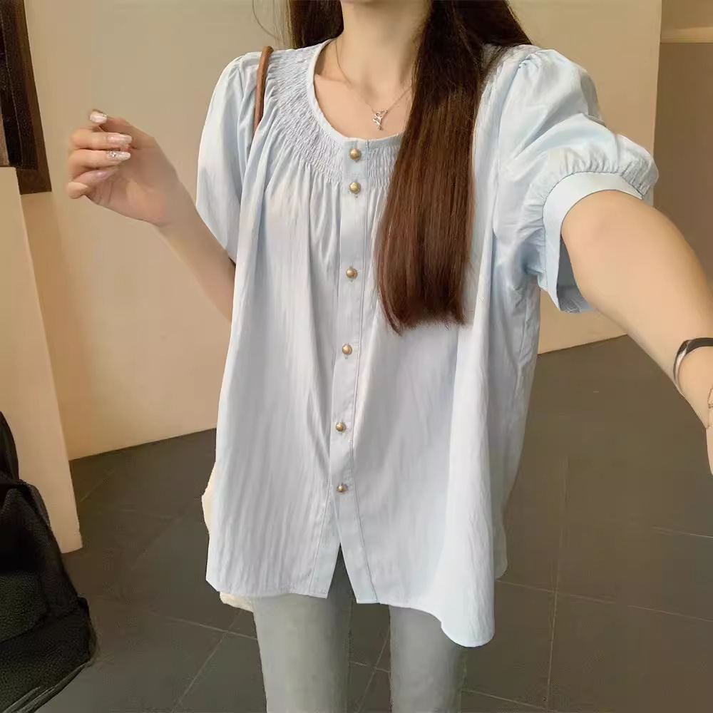 | nameOriginal | Plus Size Women's Summer Sweet Candy Color Round Neck Doll Shirt Loose Super Slim Short Sleeve Top 801272 |