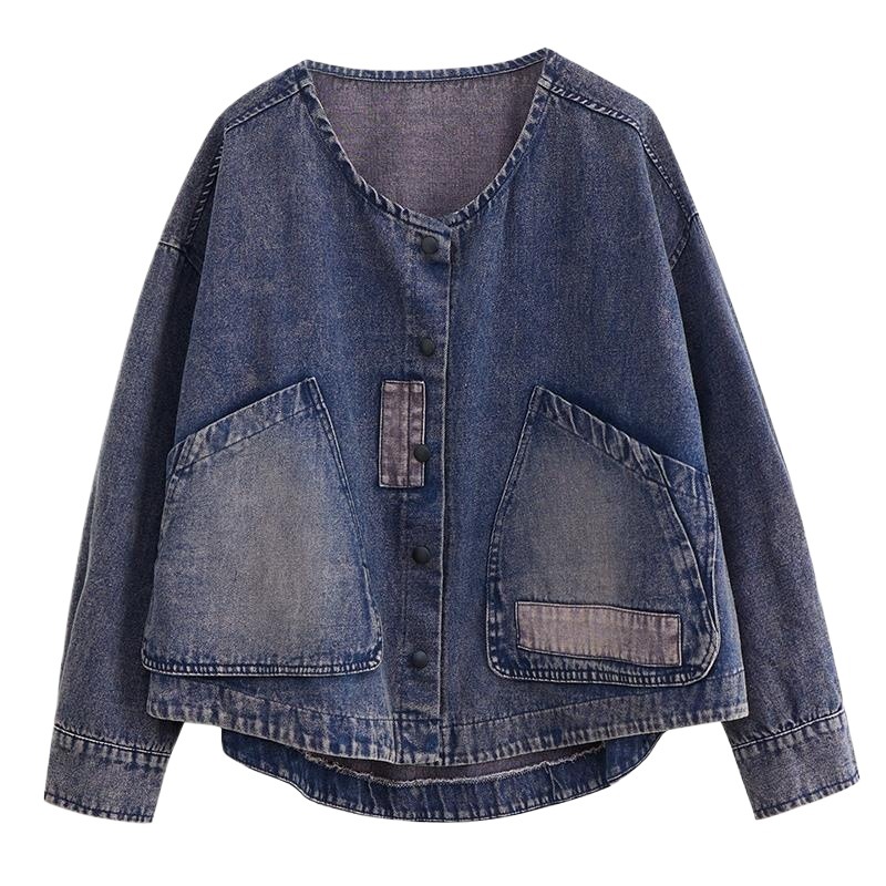 | nameOriginal | plus size Women's Wear White Old Denim Coat Women's Autumn All-match Loose Large Pocket Casual Short Jacket Top |