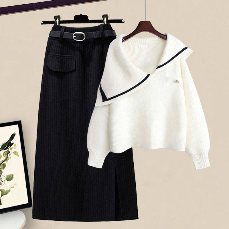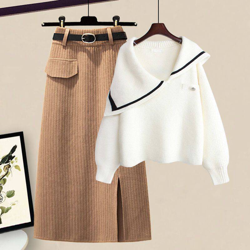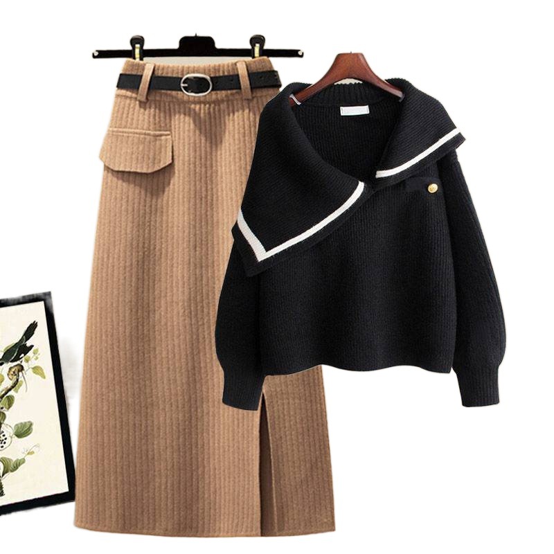 | nameOriginal | Plus size women's winter suit women's 2023 New loose age-reducing sweater high waist skirt two-piece suit fashion |