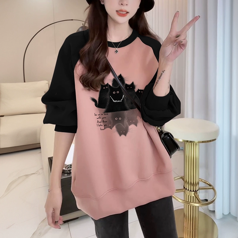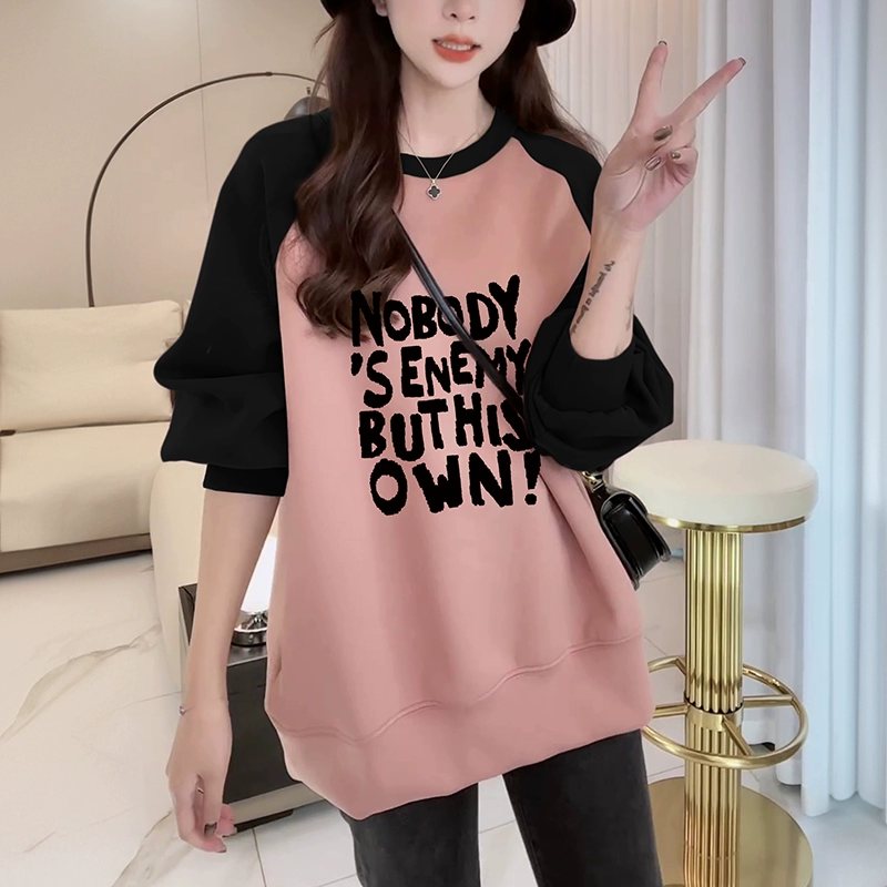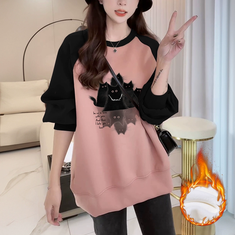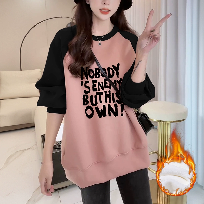 Plush autumn and winter loose contrast color raglan sleeve sweatshirt