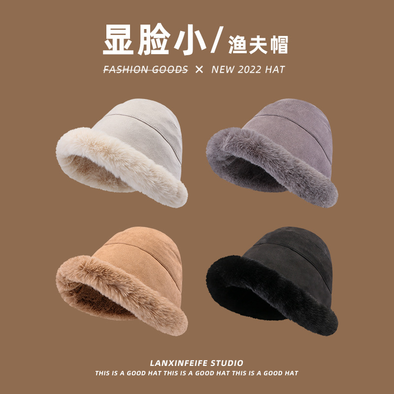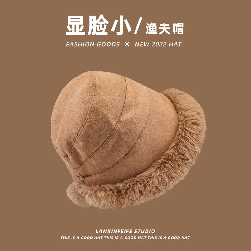 | nameOriginal | Plush Fisherman Hat Winter Warm Ear Protection Pullover Hat Japanese Style Internet Celebrant fleece-lined Thickened Suede Basin Hat Curled Cap |