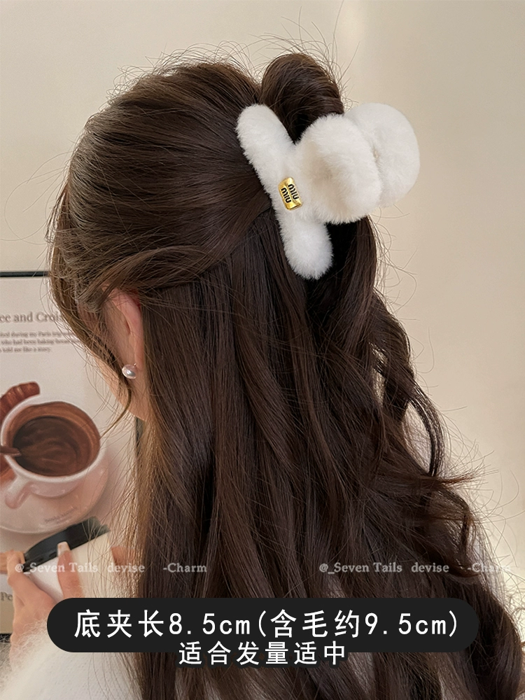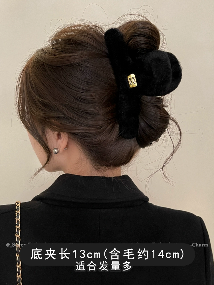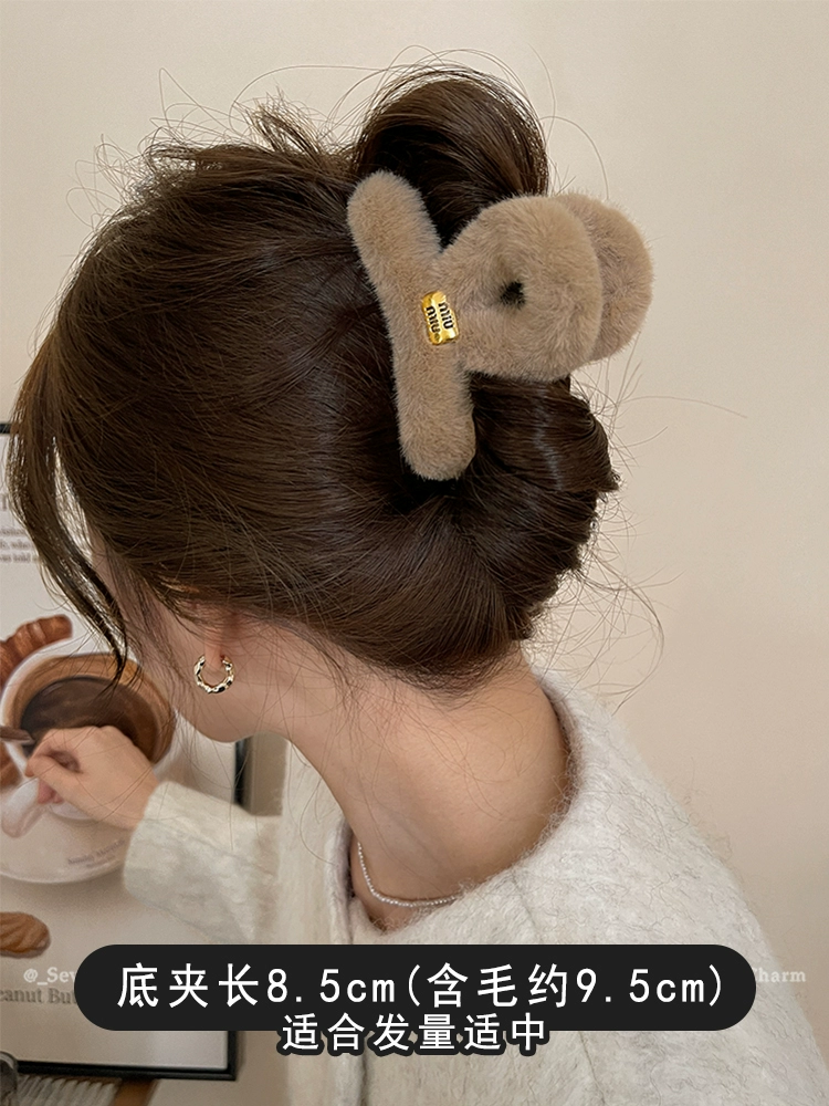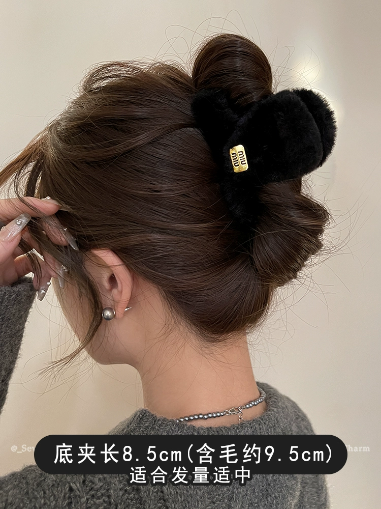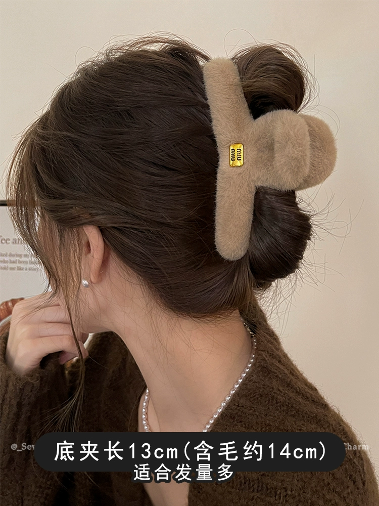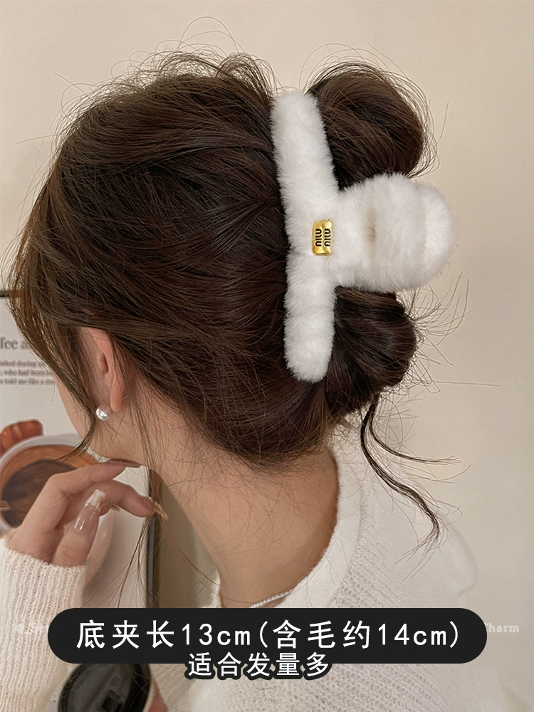 Plush grabber clip for women 2024 new large size back of head high-end furry shark clip autumn and winter versatile hair clip headwear