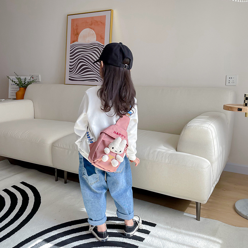 Plush Rabbit Children's Bag Distinctive Cute Chest Bag Girls' Stylish Street Snack Bag 3-6 Years Old Wide Shoulder Strap Satchel