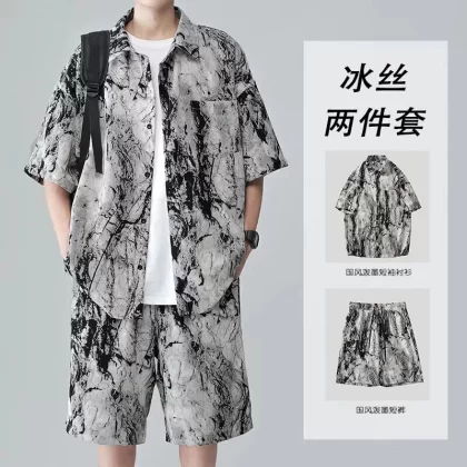 | nameOriginal | Plush seaside national style splash-ink two-piece short-sleeved suit |