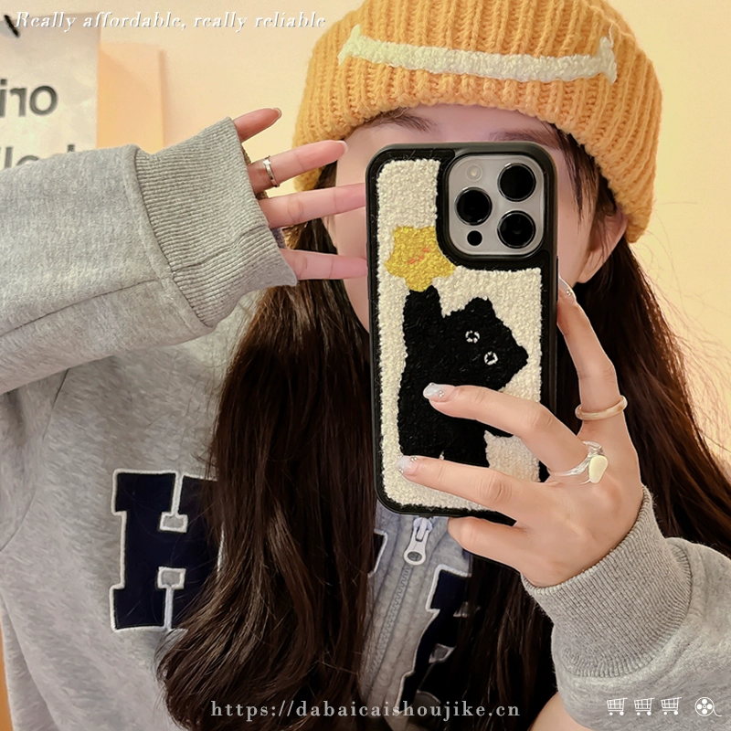 | nameOriginal | Plush star black cat suitable for iphone16promax apple 15/14/11/12/13 mobile phone case xr female x/xs autumn and winter anti-fall 12pro internet celebrity 13pro soft 12 niche 15 protective cover |