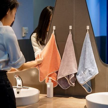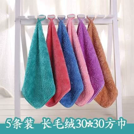 Plush towel household small square towel bathroom kitchen hand towel softer than pure cotton super absorbent thickened hanging type