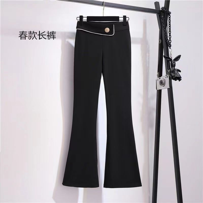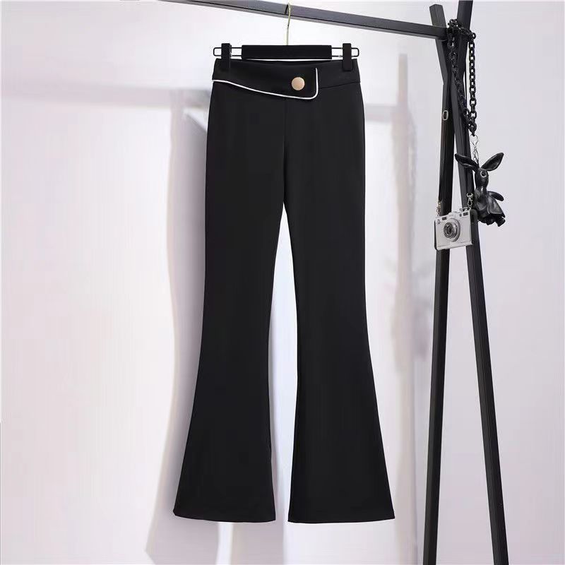 | nameOriginal | Pocket Dape Micro-Trousers Spring New 2024 Slim-Fit High Waist Outer Wearing Stretch Micro-Horn Casual Black Trousers |
