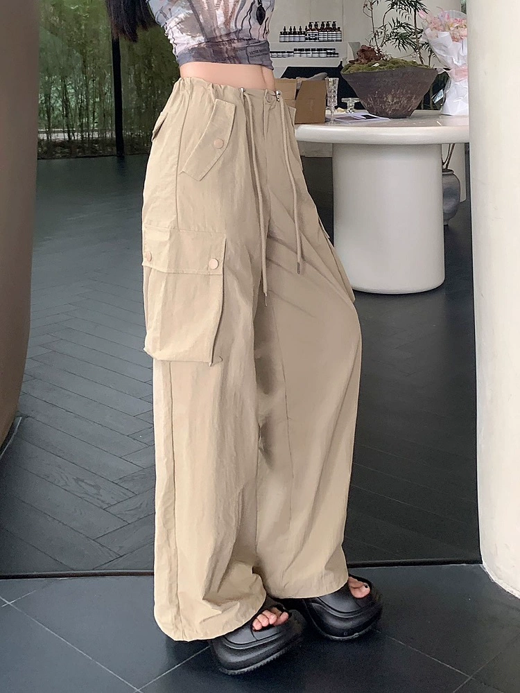 | nameOriginal | Pocket Drawstring Khaki Summer Loose Cargo Pants |