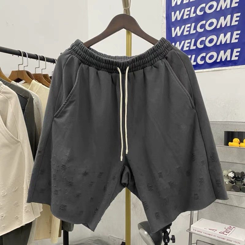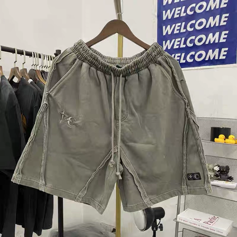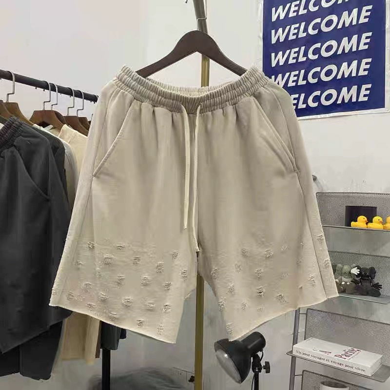Pocket mid-rise washed distressed casual shorts with embroidery