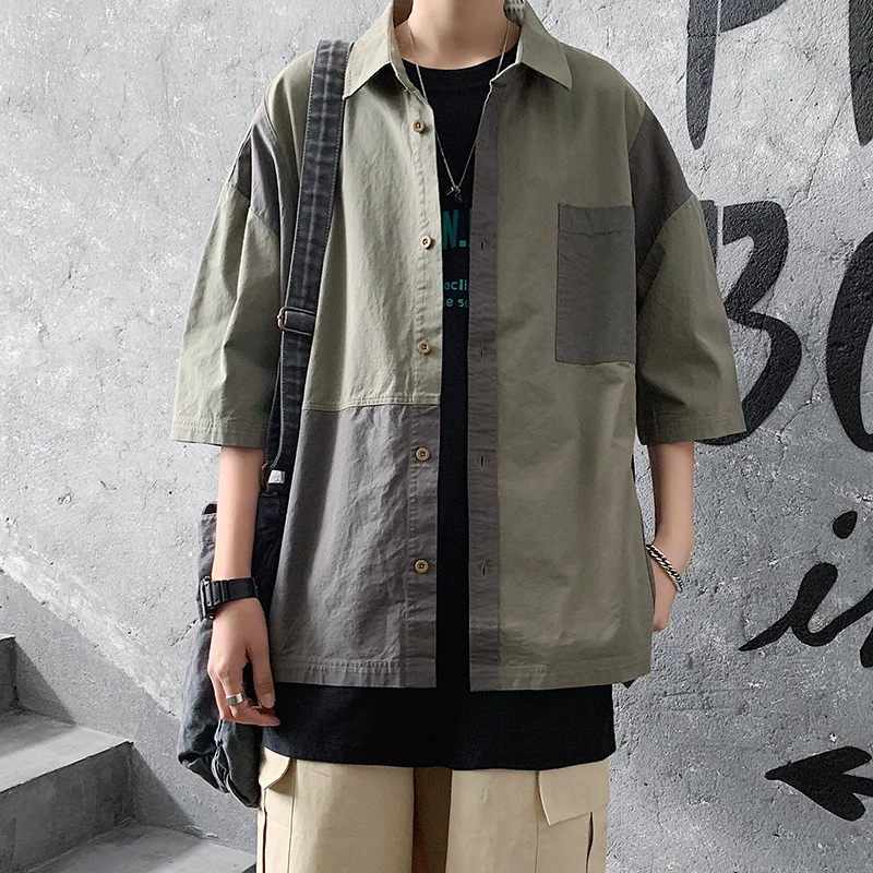 | nameOriginal | Pocket patchwork shirt half sleeve button lapel workwear |