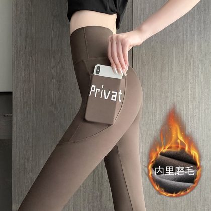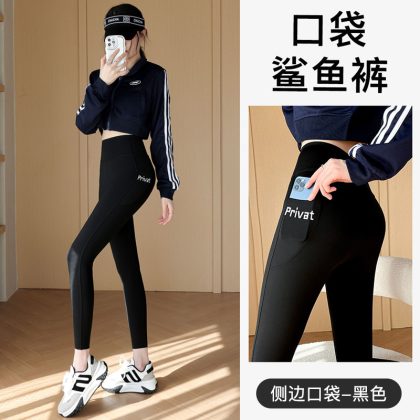 Pocket Shark Skin Leggings Women’s Spring and Autumn Outer Wear Thin Belly Tight High Waist Tight Body-Slimming plus size Yoga Barbie Pants