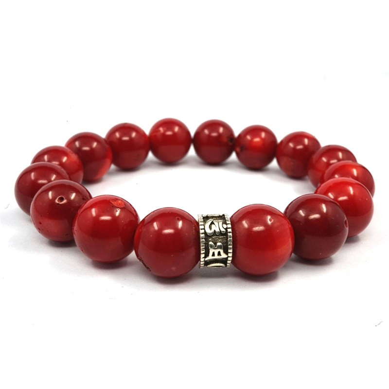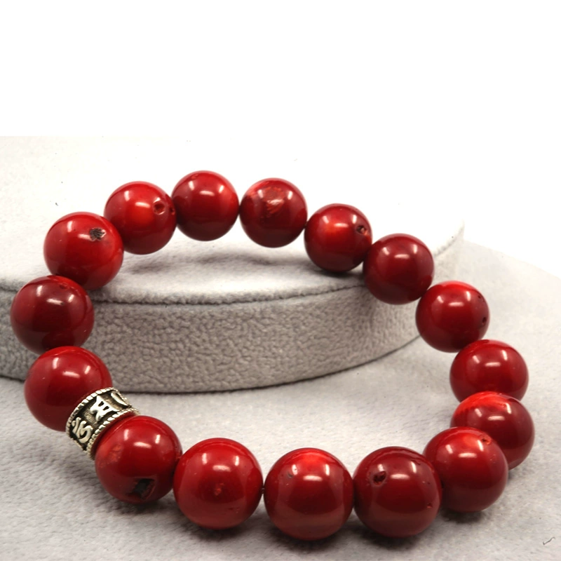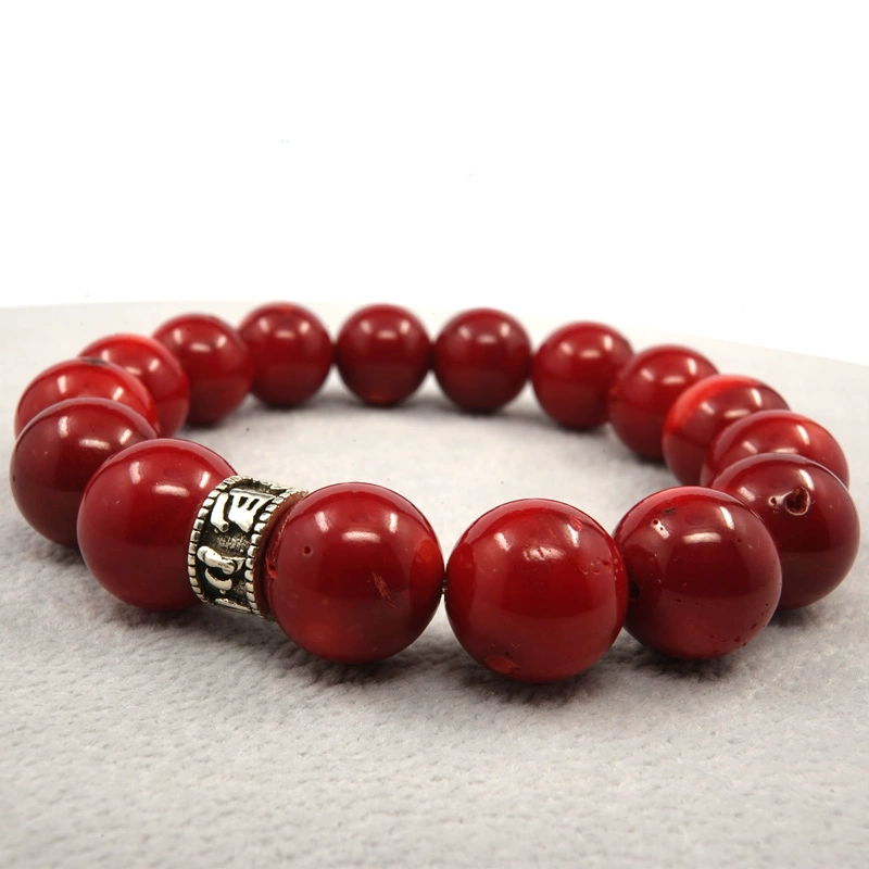 POHIER niche design coral 925 sterling silver six-character mantra bead bracelet for men and women