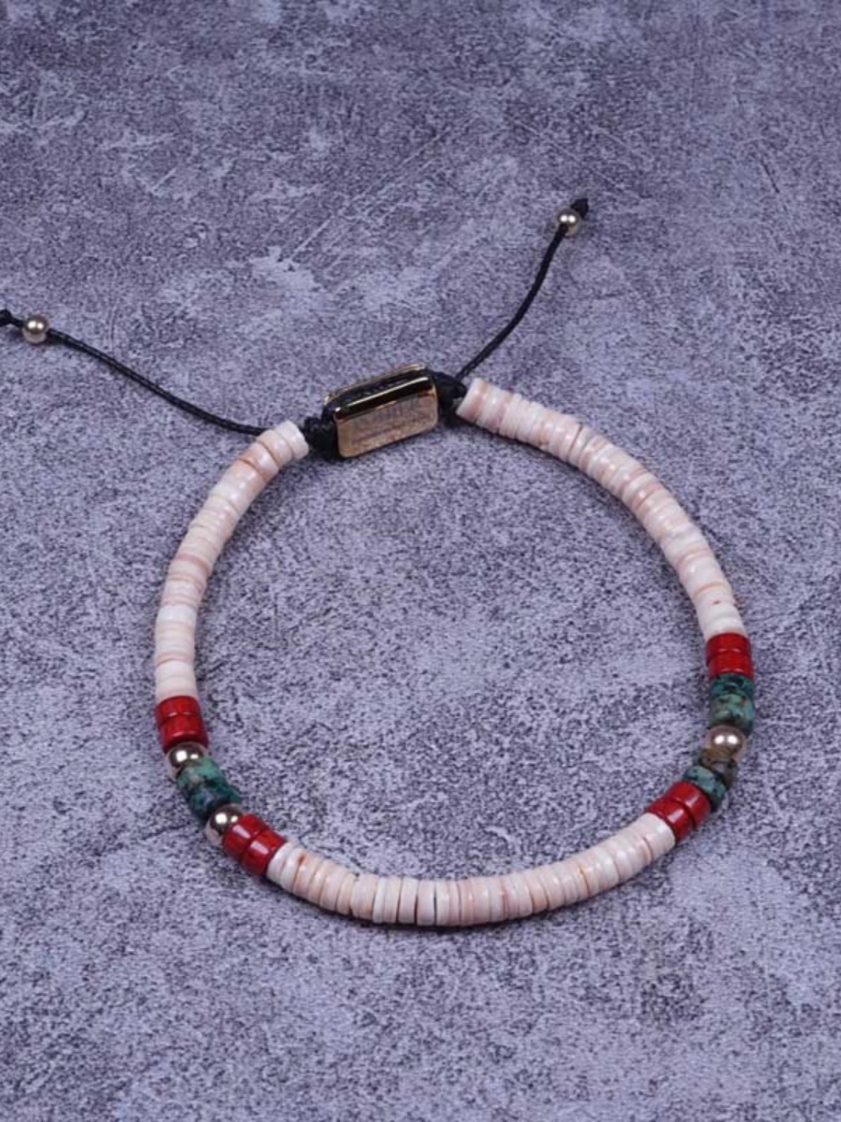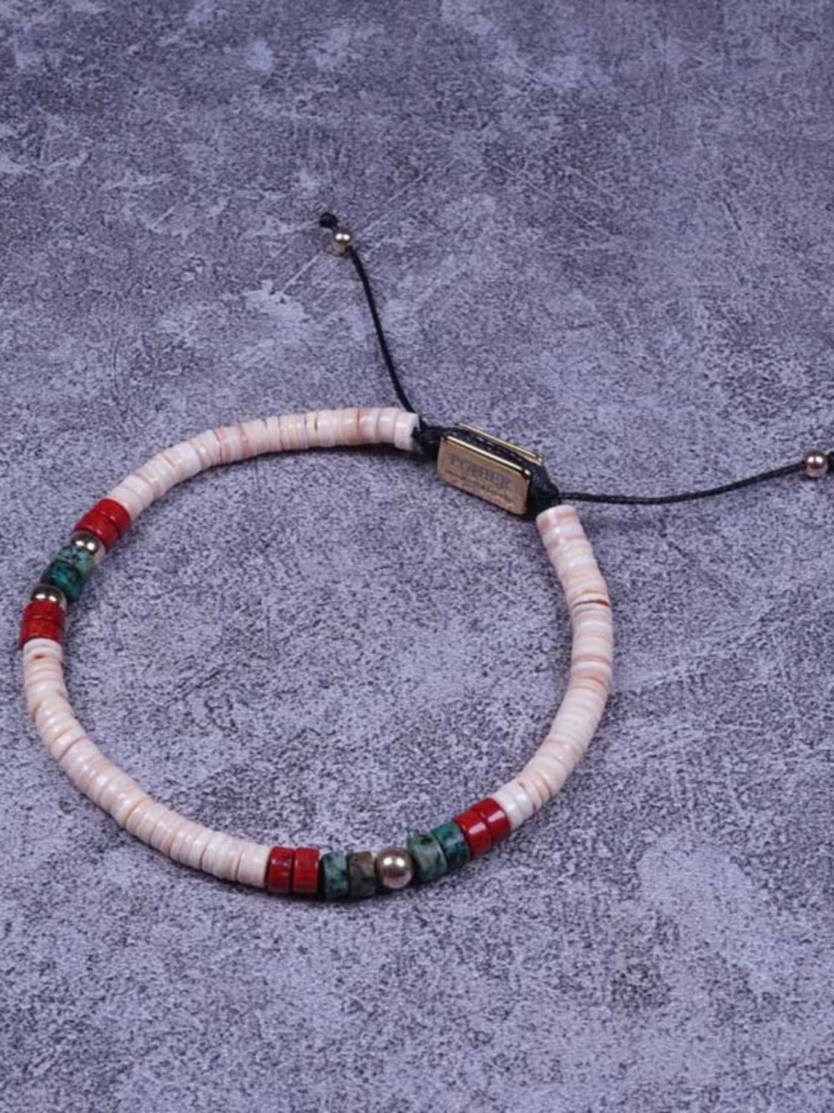 POHIER original design Hawaii beach light luxury natural shell coral 14K gold bead bracelet for men