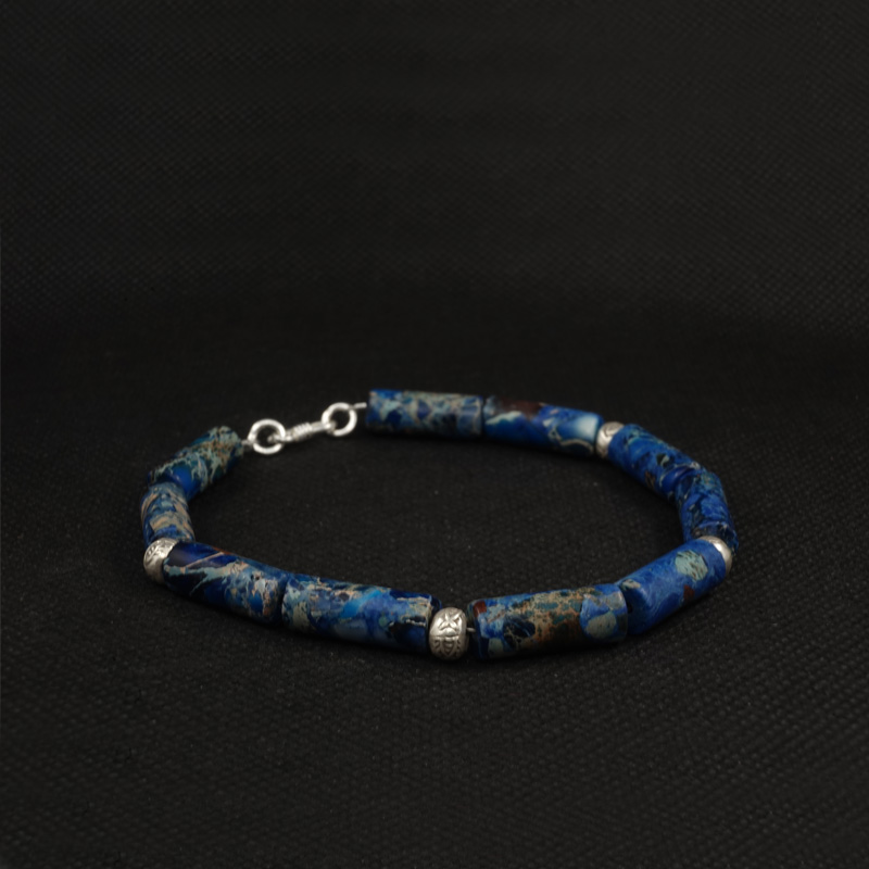 Pohier original design Indian ancient handmade silver natural stone Japanese bracelet for men and women