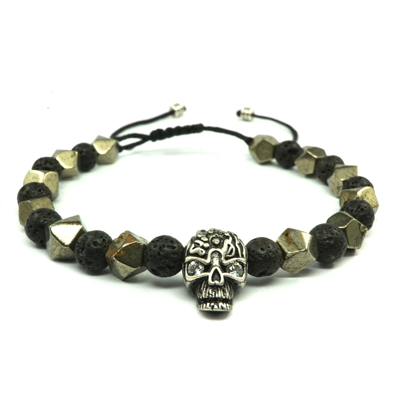 | nameOriginal | Pohier original designer retro skull bracelet for men and women natural pyrite volcanic stone bracelet for couples |