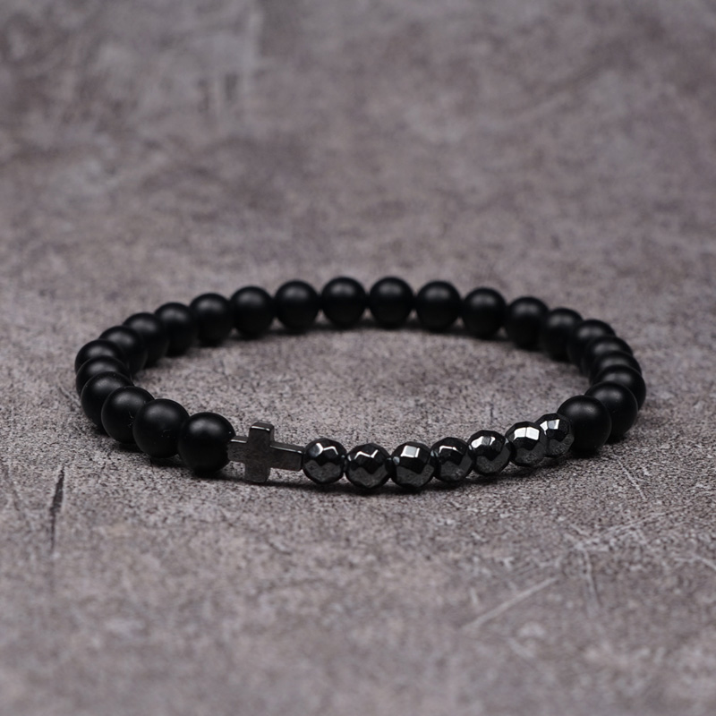 | nameOriginal | POHIER original niche design cross natural frosted black agate simple trendy brand bracelet for men and women |