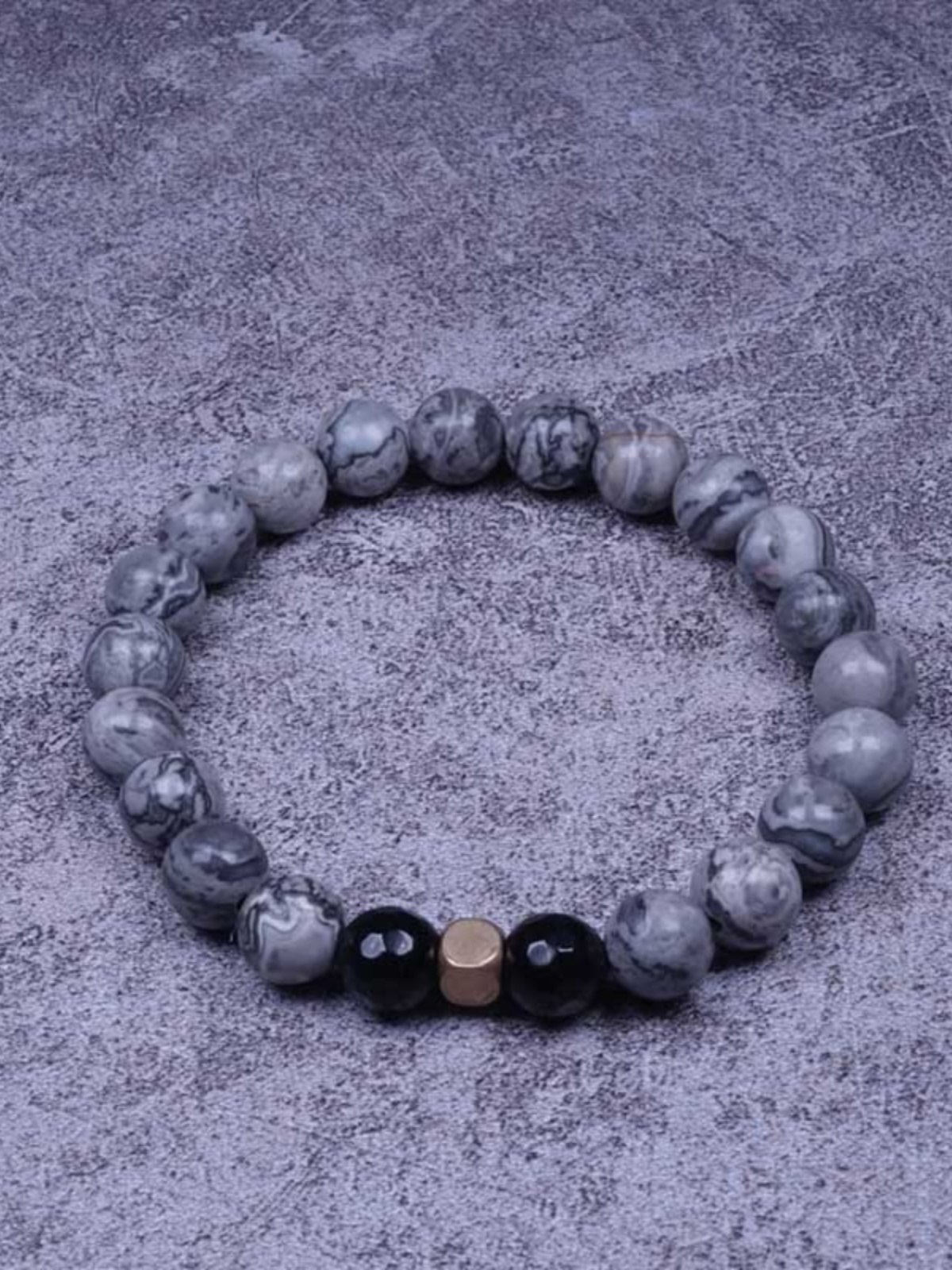 POHIER Baoxier Original Niche Design Natural Agate Nordic Cold Bad Wind Simple Bracelet Men’s Bracelet