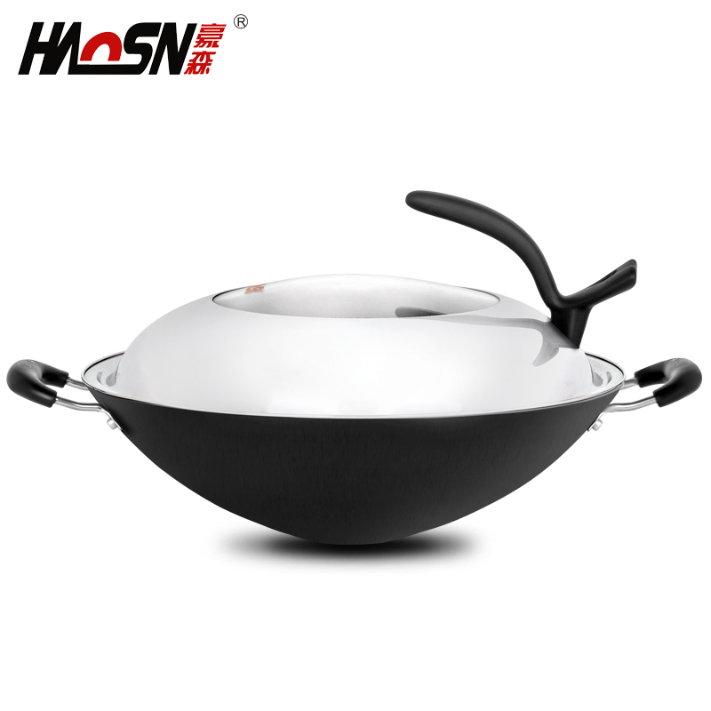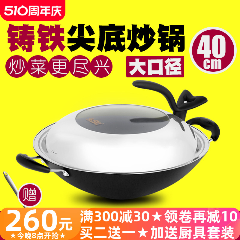 Pointed bottom wok non-stick pan old-fashioned household multifunctional binaural raw cast iron cookware for gas stove 40cm