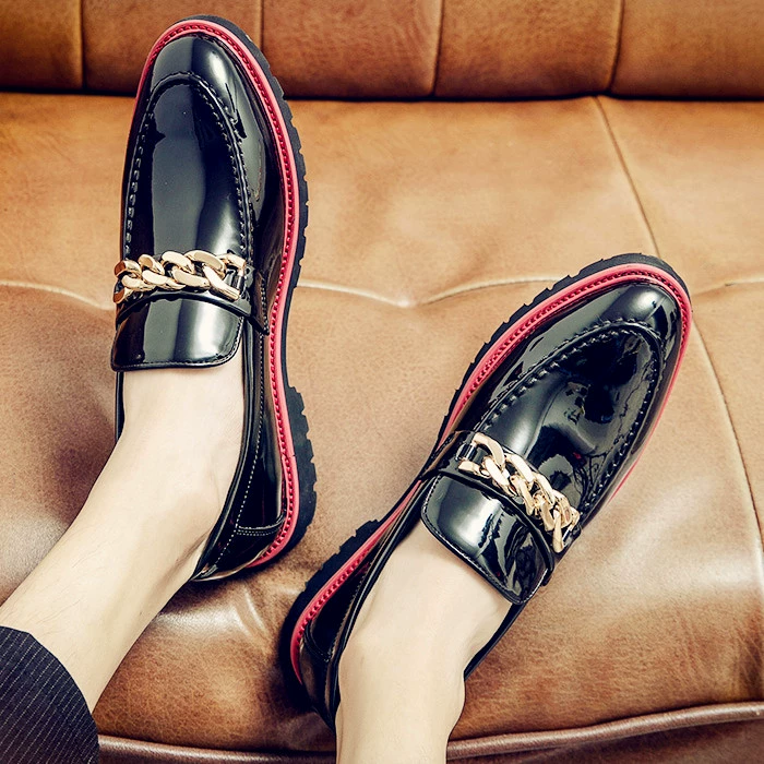 | nameOriginal | Pointed-toe British business casual glossy punk retro nightclub hairstylist leather shoes lazy slip-on beanie shoes for men |