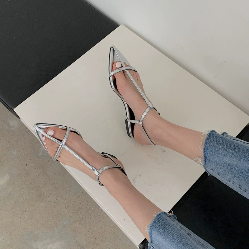 | nameOriginal | Pointed toe flat bottom beach Korean sexy one-line buckle belt |